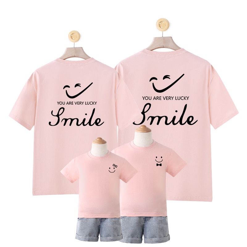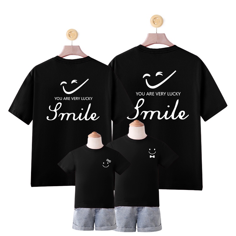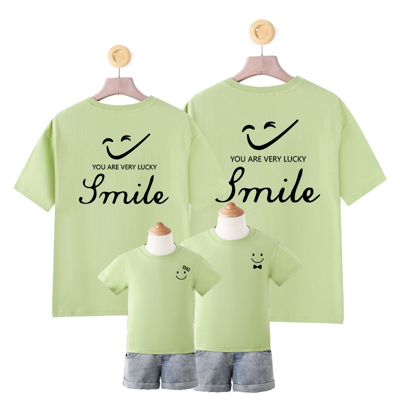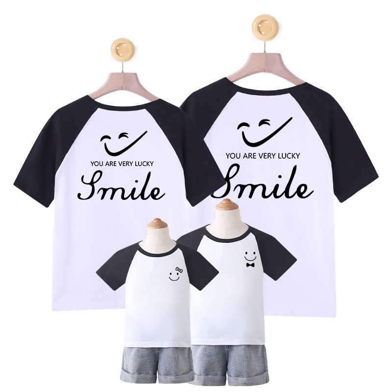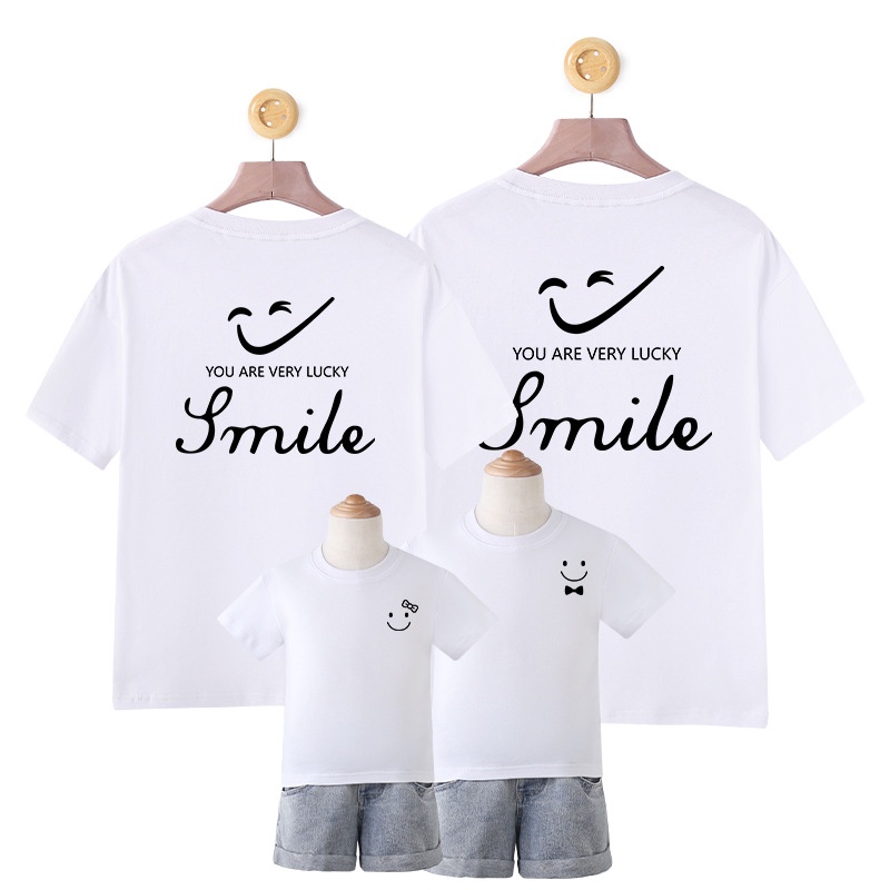 【Anna‘s 親子裝】簡約笑臉親子裝 親子裝短袖 短袖圓領T 情侶裝 大尺碼5XL 多色可選 全家福親子裝