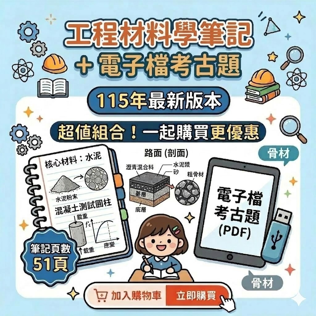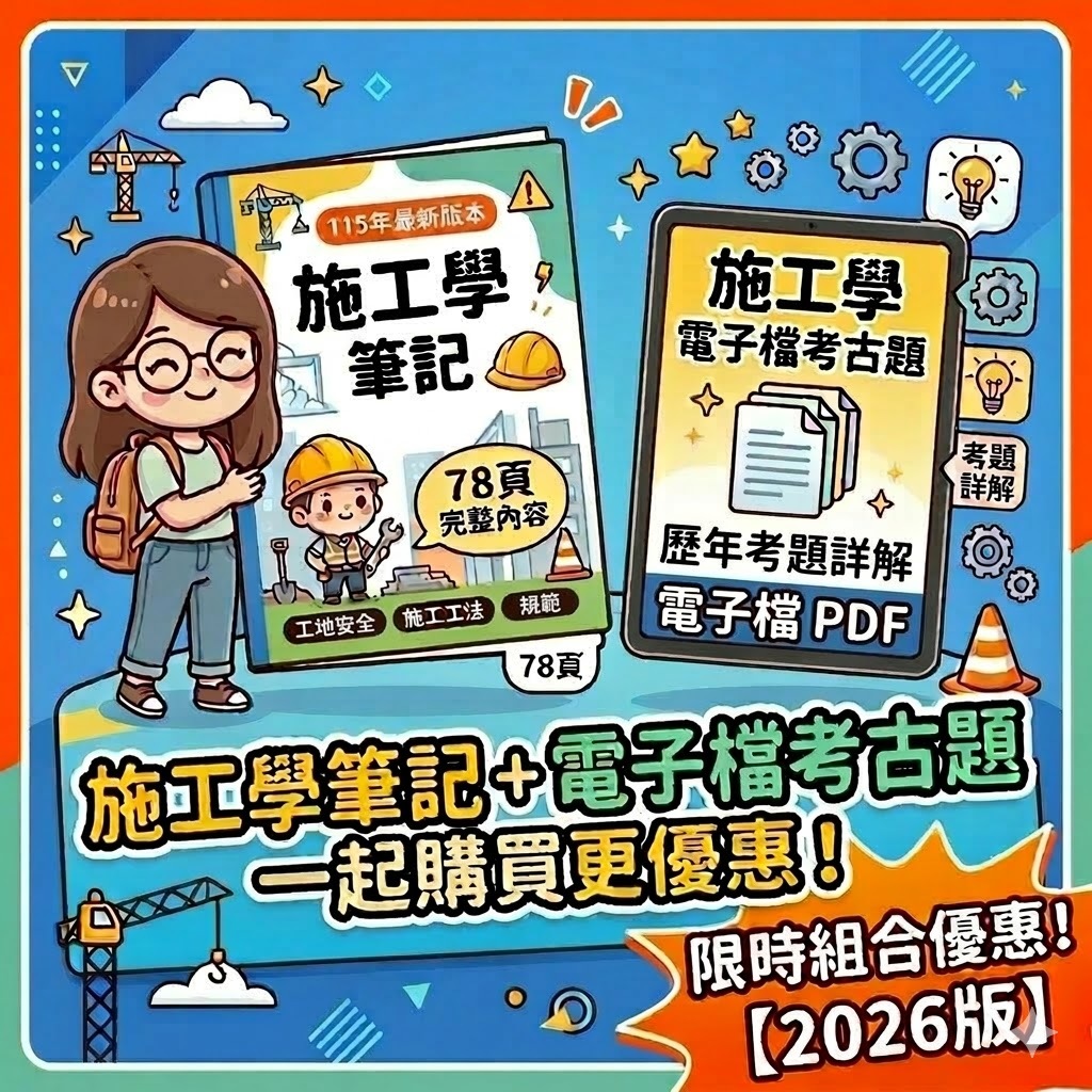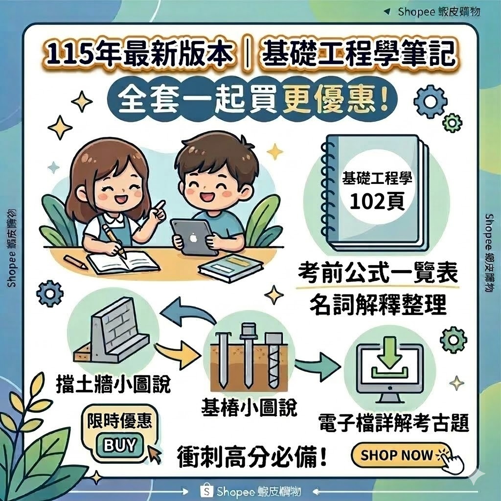🔥115年最新版🔥【台大土木】 土木技師筆記(高考/普考/地方特考/土木技師/國營職員)重點整理筆記+考古題詳解