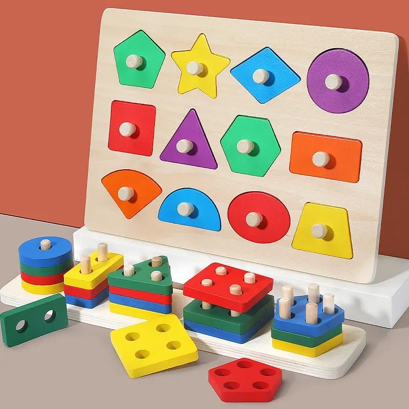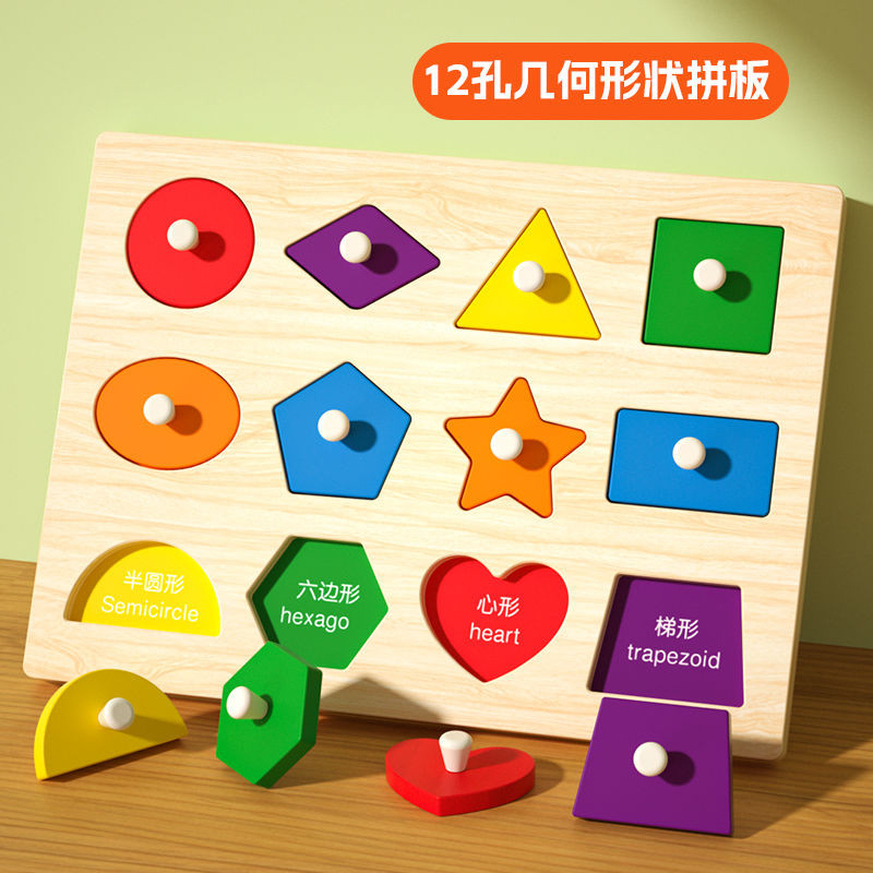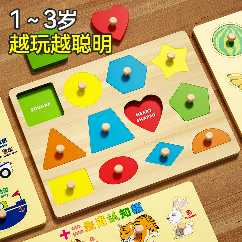 拼圖遊戲✨蒙氏早教幾何入門拼板手抓板拼圖積木形狀配對嵌板1-3歲益智開發