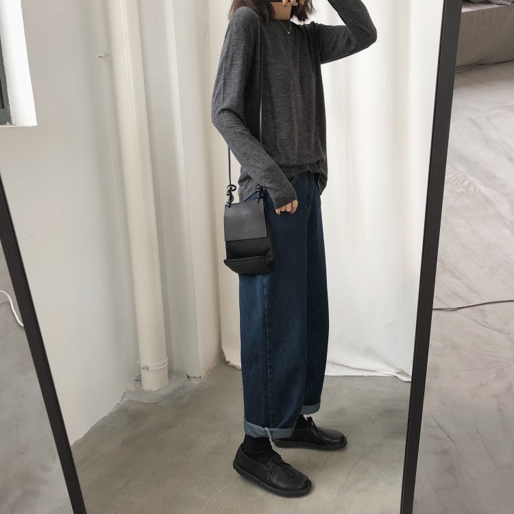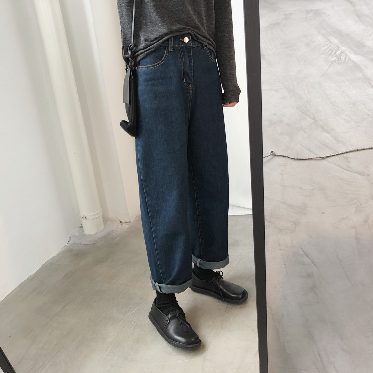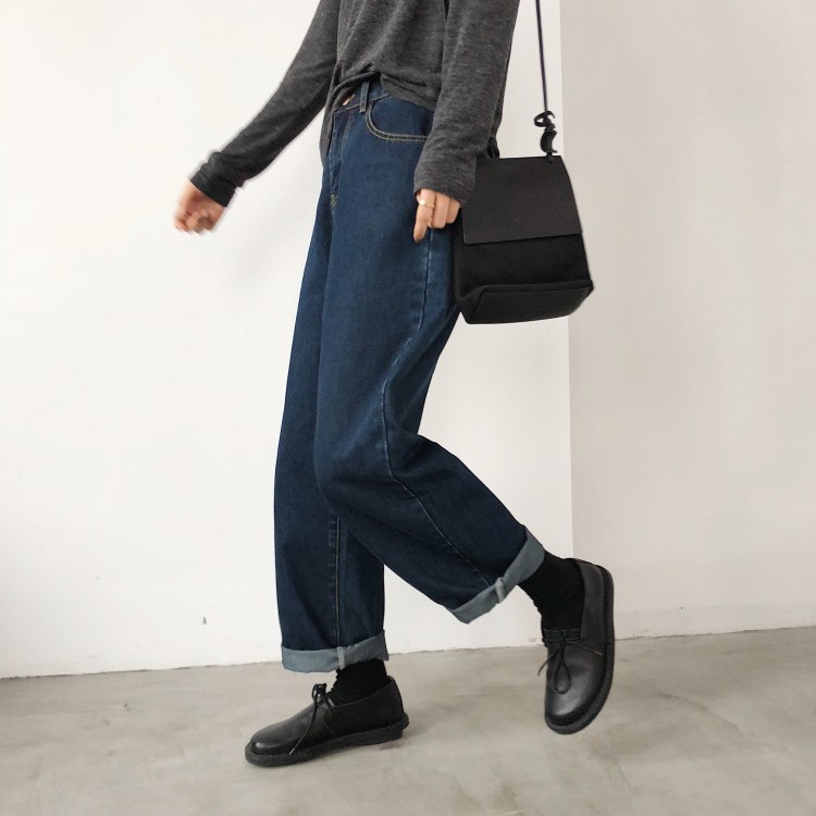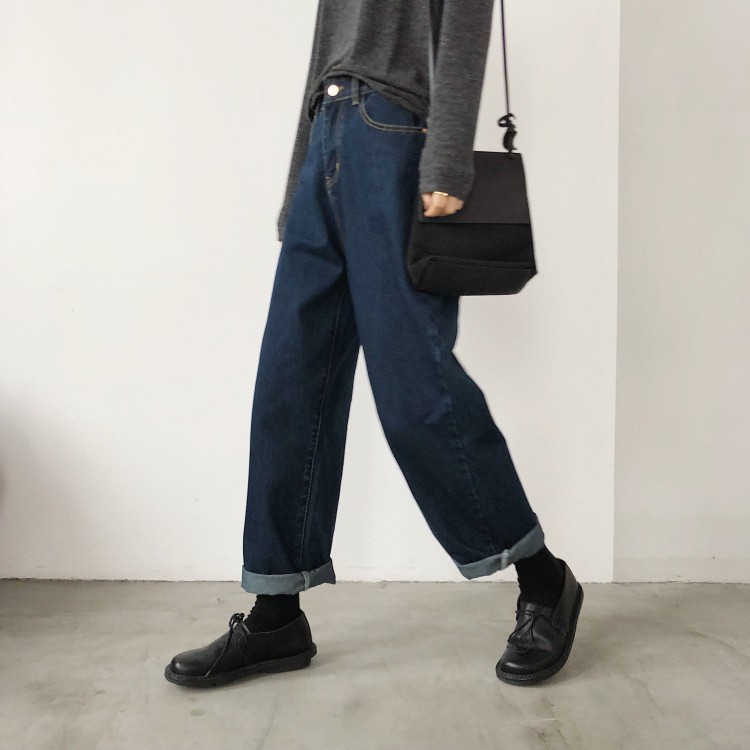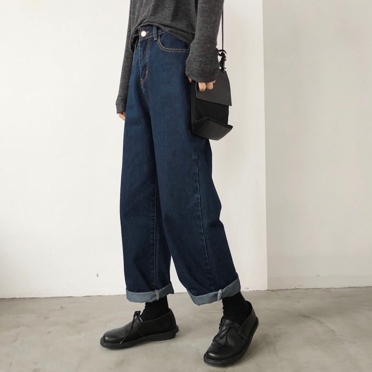 花灰灰🌟藏肉肉達人 l 黑X藍兩色 S-XL復古好版型寬管牛仔褲 高腰顯瘦休閒男友風百搭直筒褲 直筒牛仔褲 牛仔寬褲