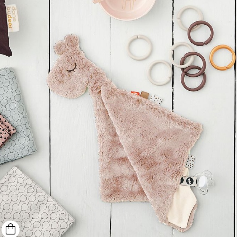 降價!丹麥Done by deer 全新未使用 qqmei推薦口水巾 安撫巾 乾燥花粉色 長頸鹿Raffi