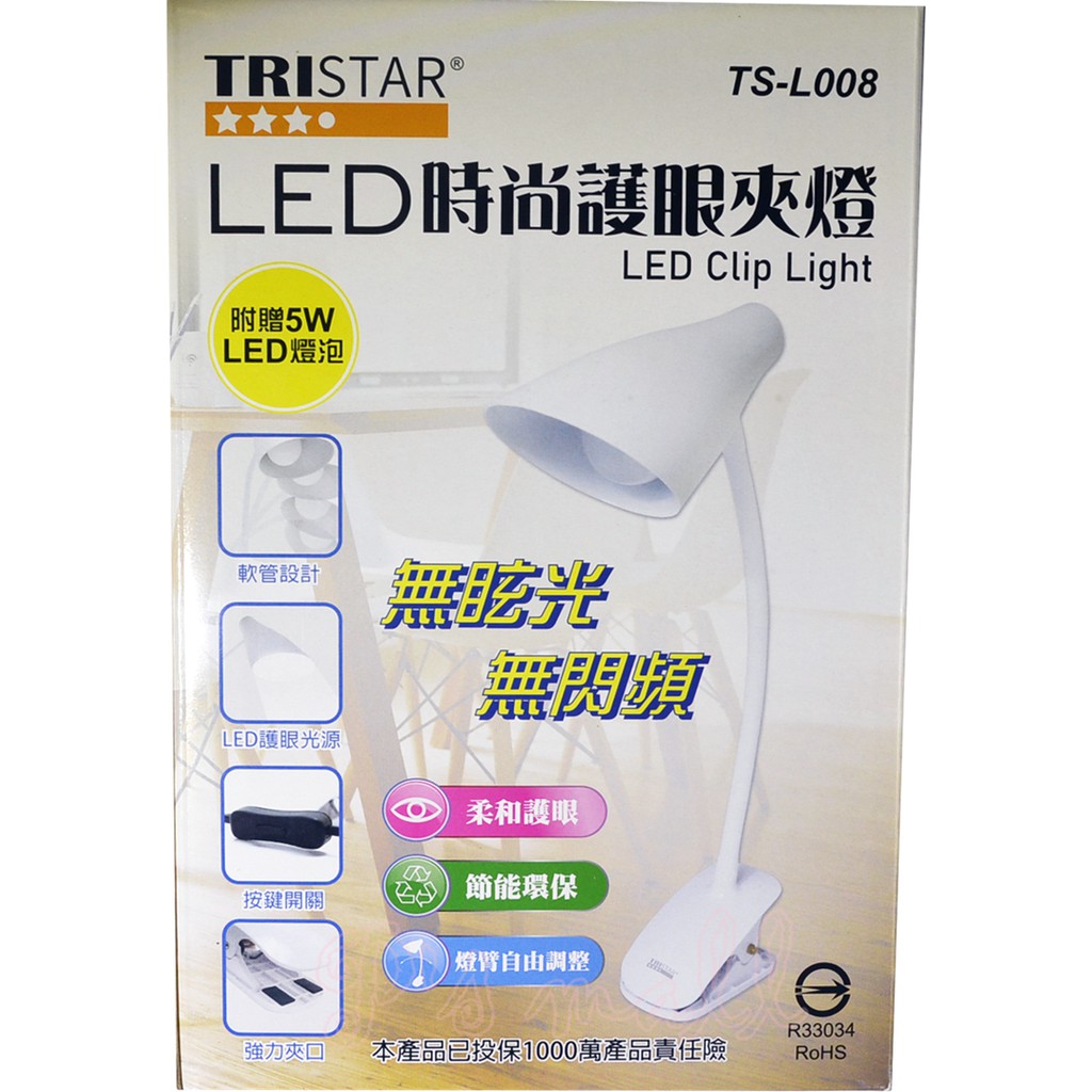 台灣製 TRISTAR LED時尚護眼夾燈 LED夾燈 可夾式檯燈 可夾式閱讀燈 夾式檯燈 夾燈 TS-L008