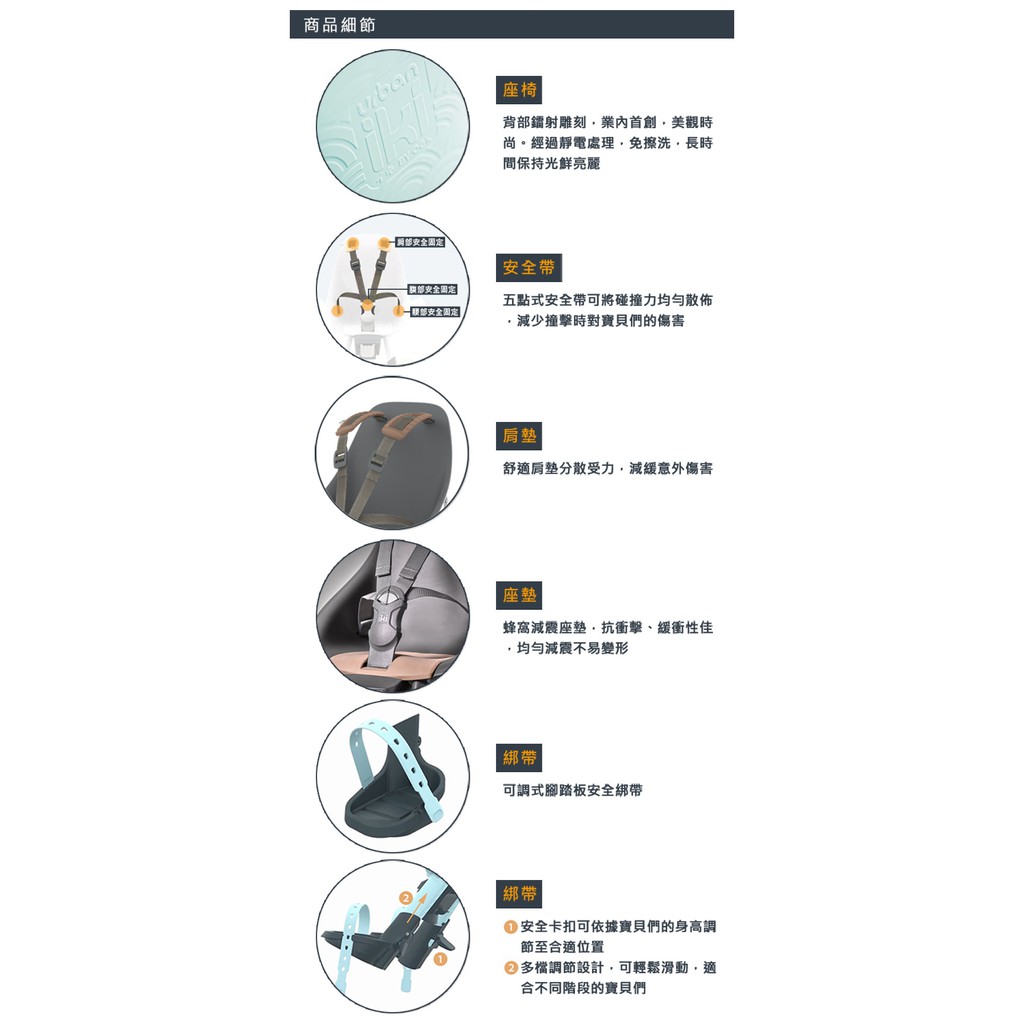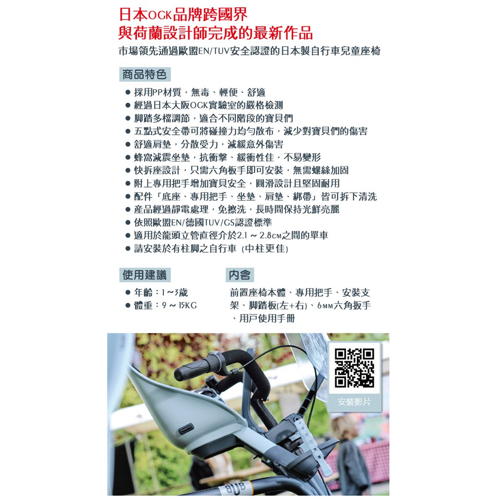 (附扶手握把)日本OGK urban iki 前置兒童安全座椅 腳踏自行單車用合格標章兒童座椅 IKIURBAN