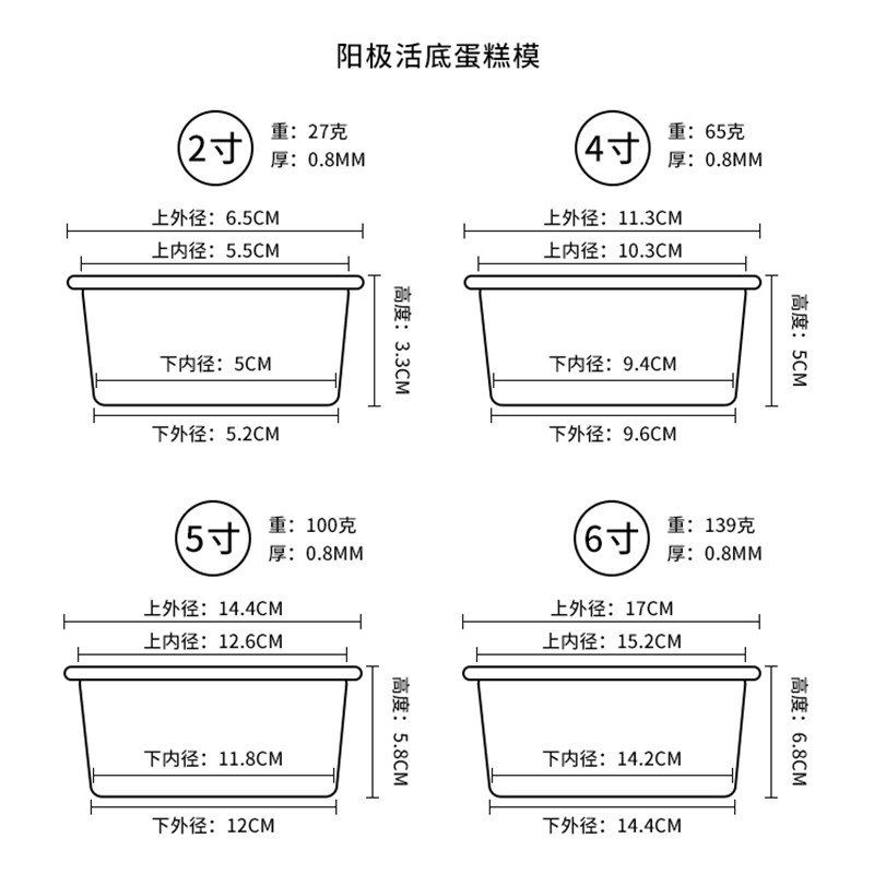 4寸/6寸/8寸/10寸活底蛋糕模具 烘焙模具 家用戚風 慕斯蛋糕 烤箱用 鋁合金 陽極 戚風乳酪圓形蛋糕模 烘焙工具