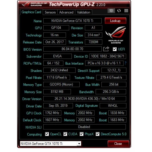 EVGA GeForce GTX 1070 Ti SC GAMING, 08G-P4-5671-KR, 8GB GDDR