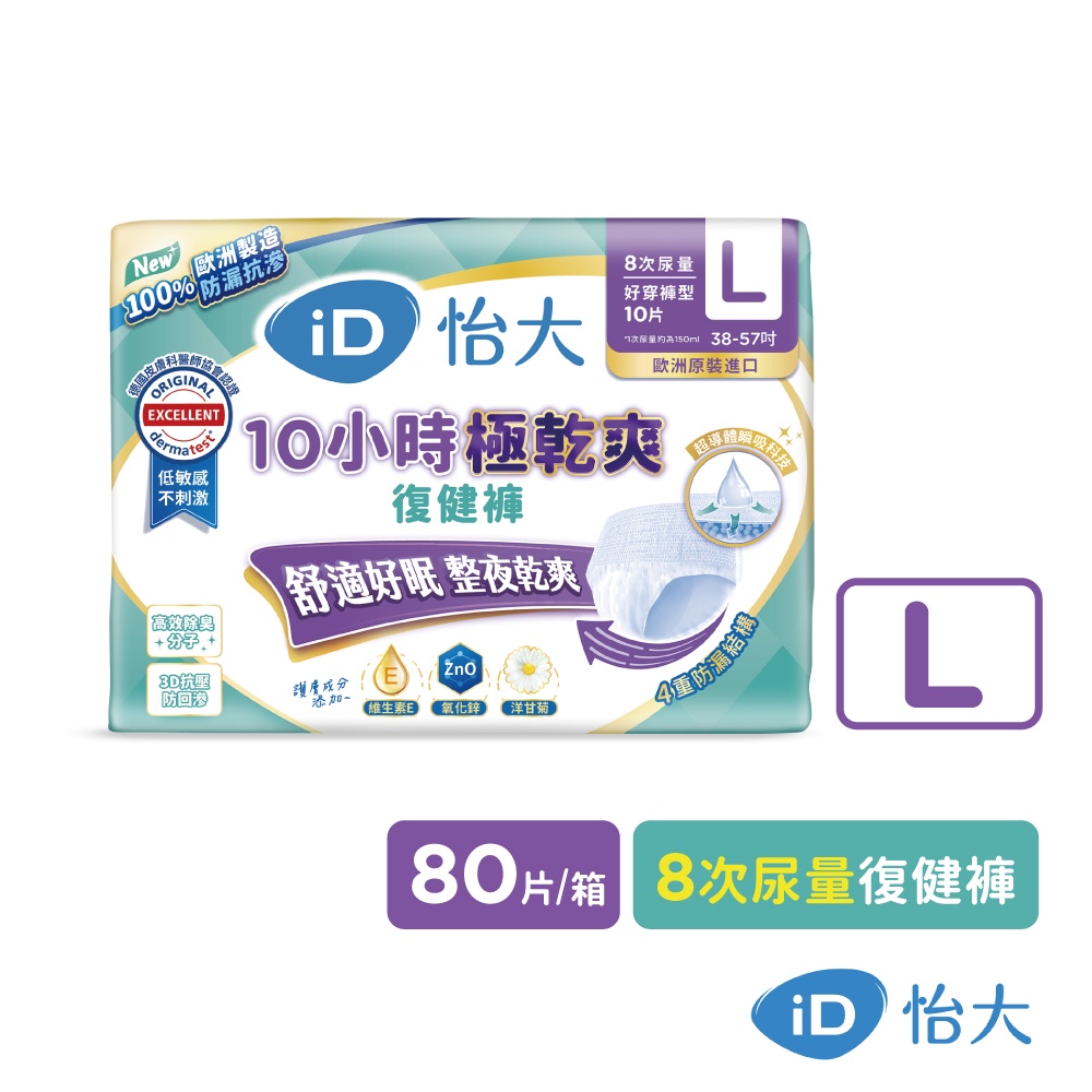 【iD怡大】復健褲 10小時極乾爽系列 (M、L箱購)|品牌旗艦店 歐洲原裝進口成人紙尿褲
