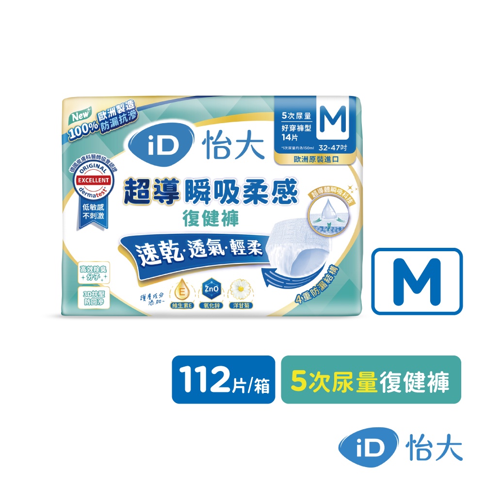 【iD怡大】復健褲 超導瞬吸柔感 (日間超導吸收) 系列 (S、M、L、XL箱購)|品牌旗艦店 歐洲原裝進口成人紙尿褲
