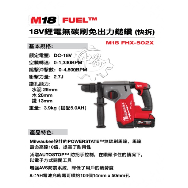 *中崙五金*【附發票】美沃奇 18V無刷免出力鎚鑽 M18FHX-502X M18 FHX M18 FDDEXL-0