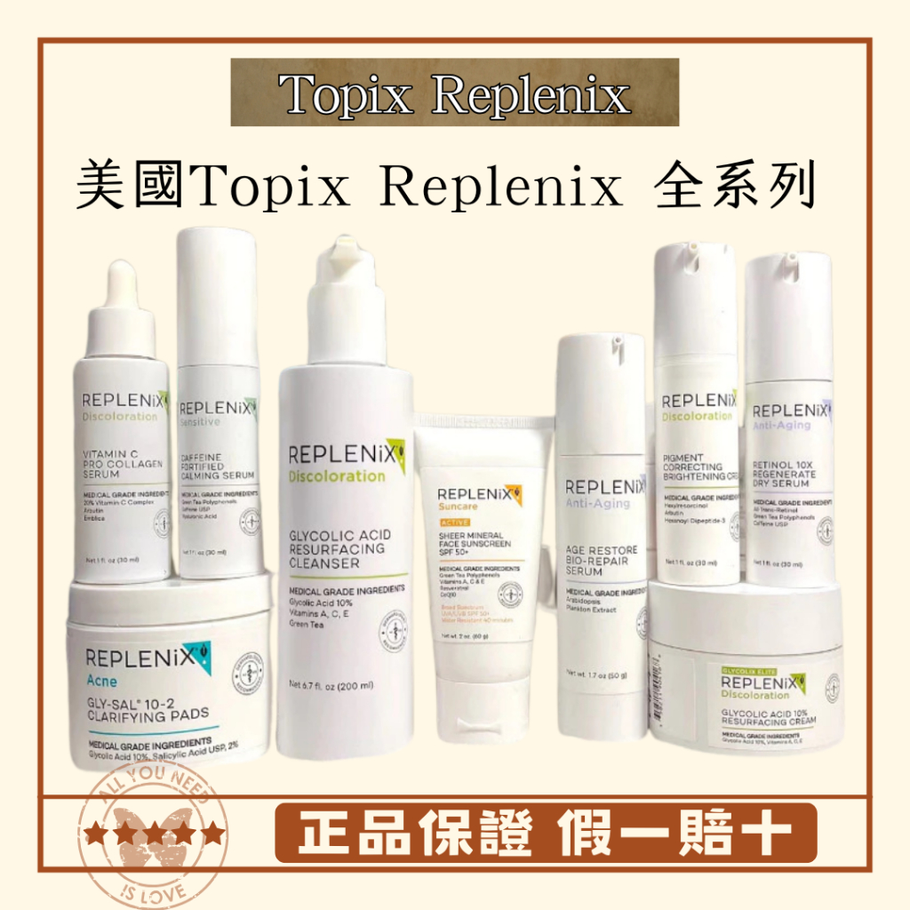 Topix Replenix 全系列 果酸面霜/身體乳/SRS精華/VC精華/物理防曬/綠茶精華/綠茶面霜