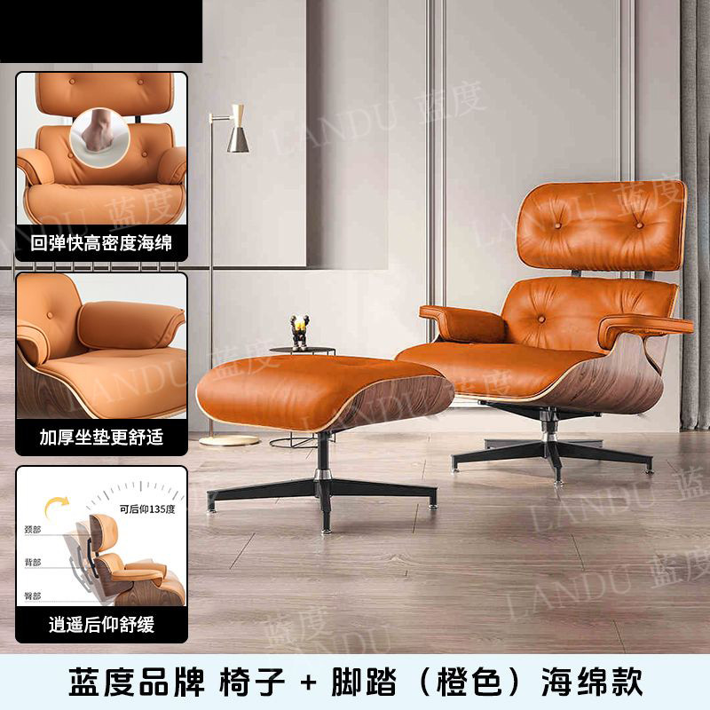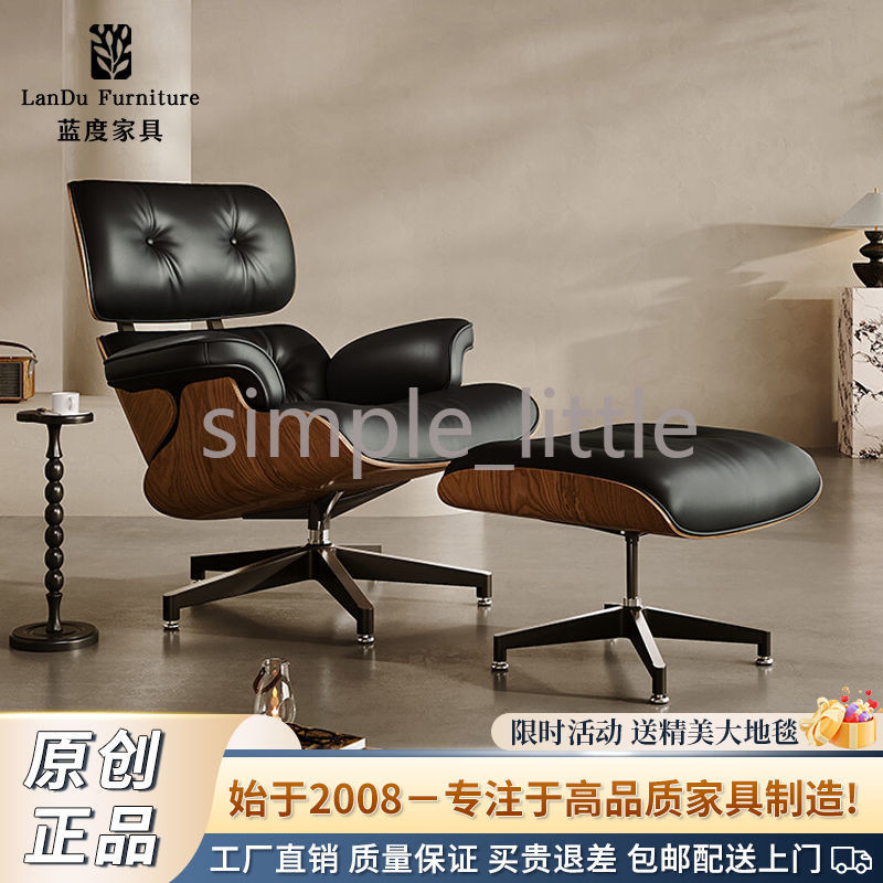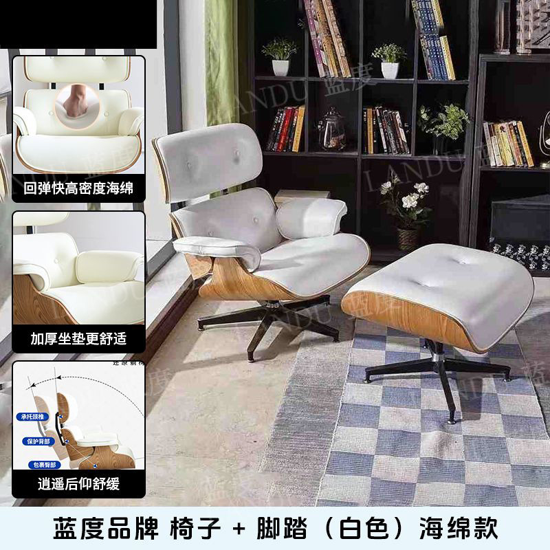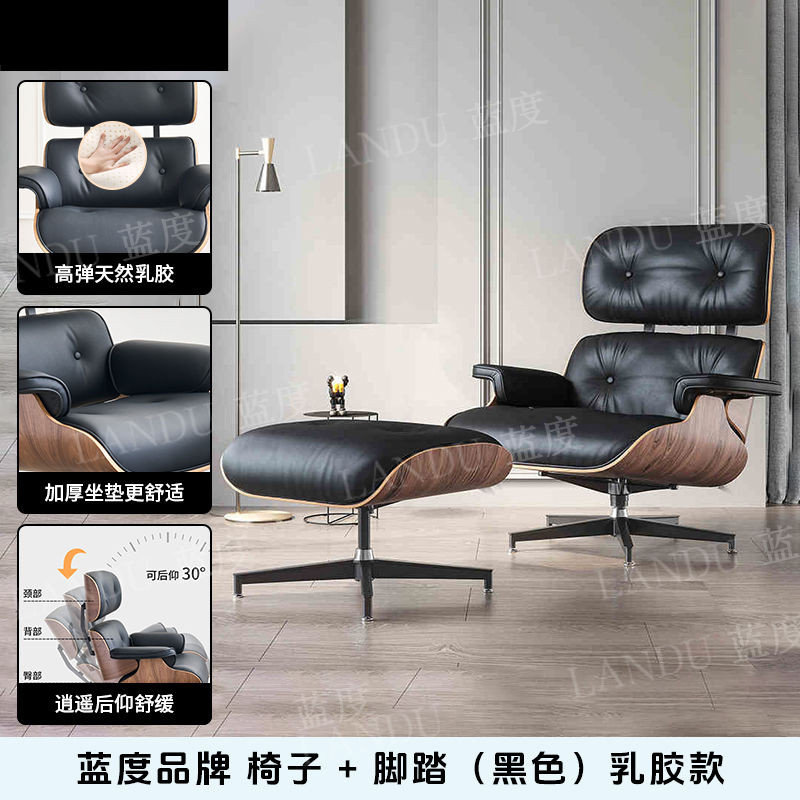 【免運/可開發票】藍度伊姆斯躺椅 原版eames椅 沙發椅 輕奢高端真皮單人設計師休閒椅 辦公室 大班椅 可躺轉椅