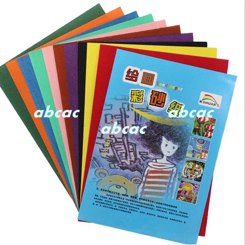 彩砂紙彩色8k4開16開A4刮砂紙兒童畫畫紙10張彩沙紙彩砂紙//abcac