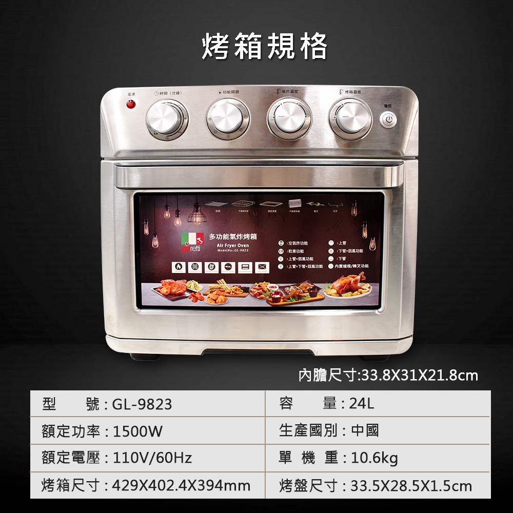 晶工旗艦館【義大利Giaretti】24L 多功能氣炸烤箱 GL-9823
