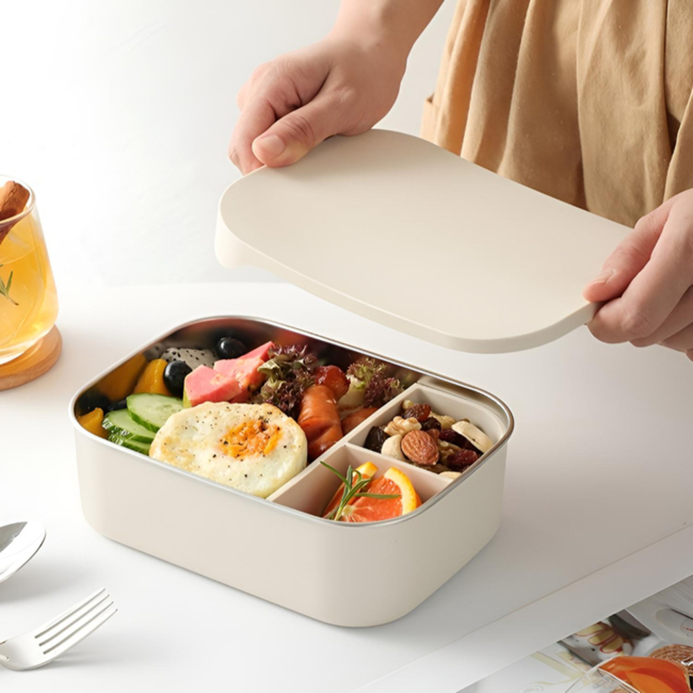 台灣現貨24H出貨【Homely Zakka】 可微波頂級不鏽鋼抗刮耐磨完全分隔便當盒三格