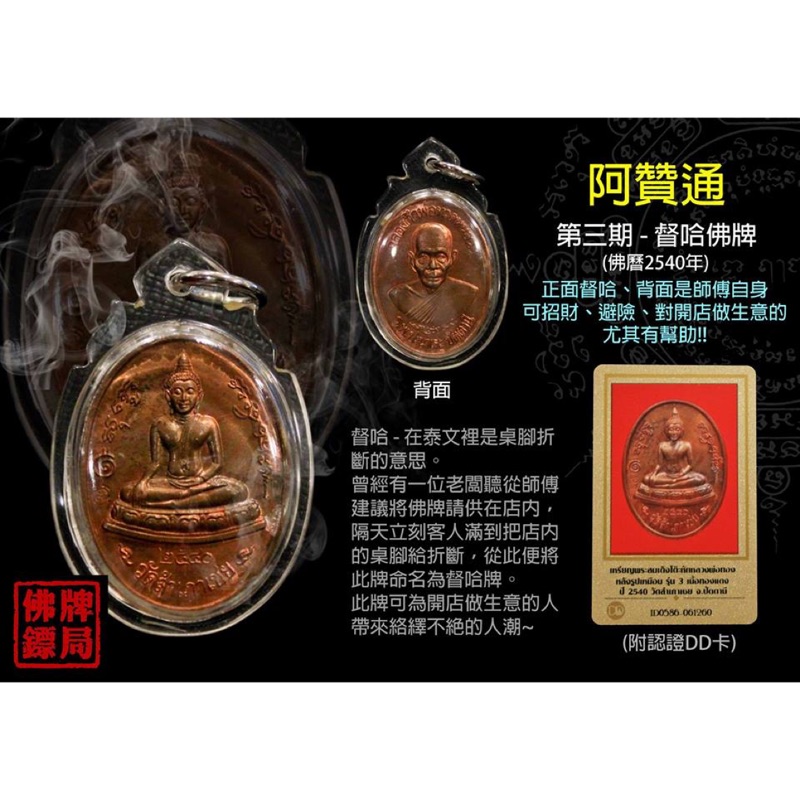阿贊通 督哈佛牌第三期 2540 佛牌放在錢櫃 生意一定變好 自身 帶DD認證卡 阿贊通 佛牌鏢局