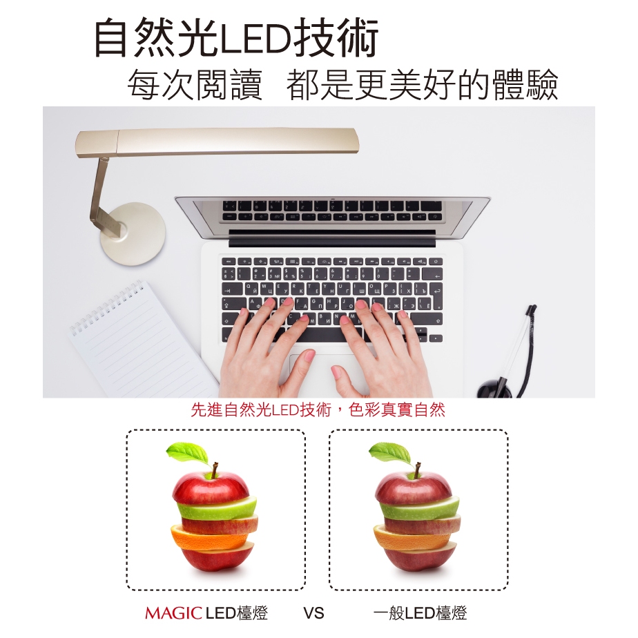 新品上架~MAGIC大視界LED護眼檯燈 (MA326G),二倍大照射範圍 4種光源情境 閱讀燈 兒童檯燈 成長書桌燈