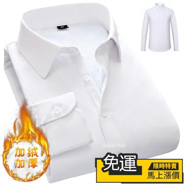 🔥台灣熱購🔥秋冬加絨加厚保暖襯衫男長袖白純色襯衣寸休閒商務工裝正裝職業裝 男襯衫 長袖襯衫 大尺碼襯衫 工作襯衫