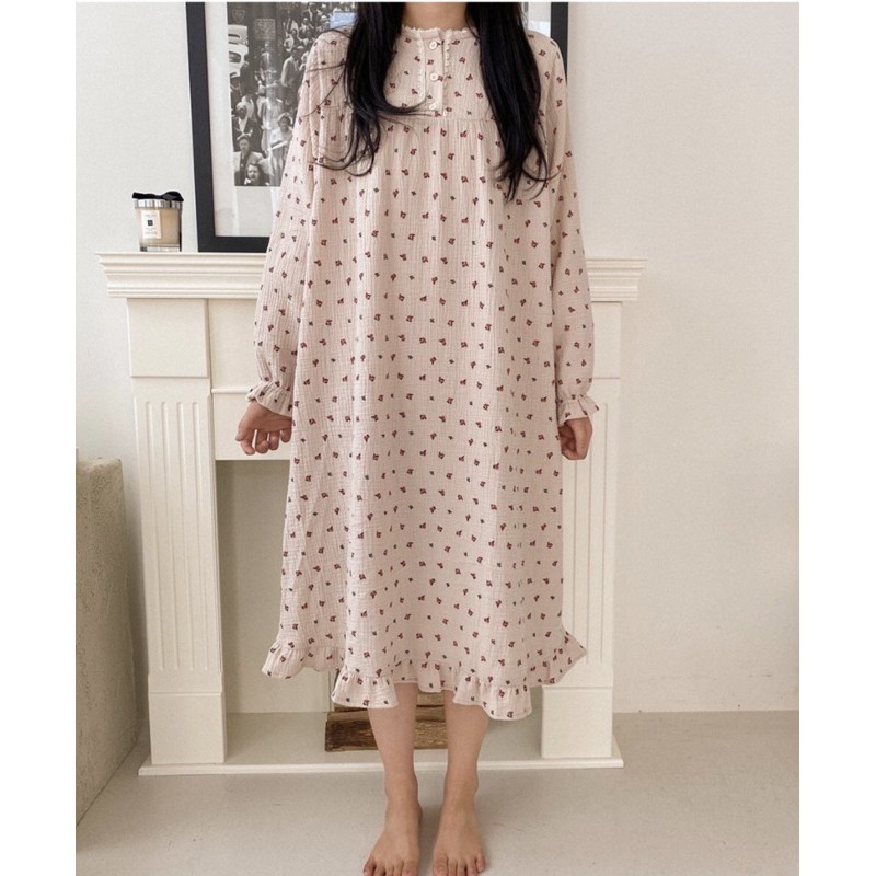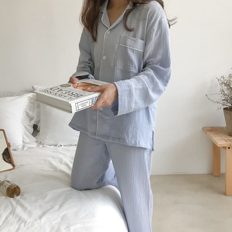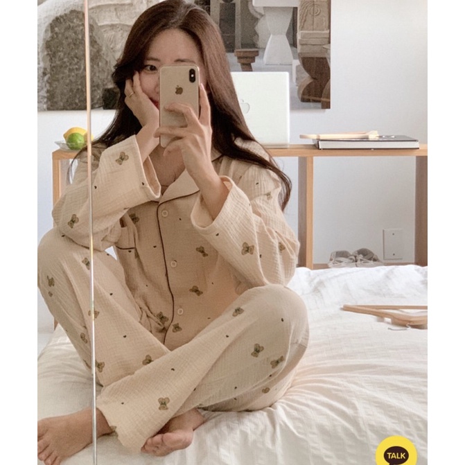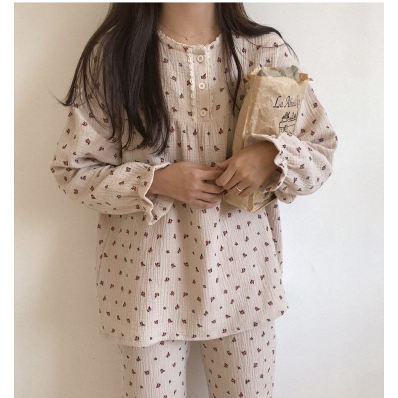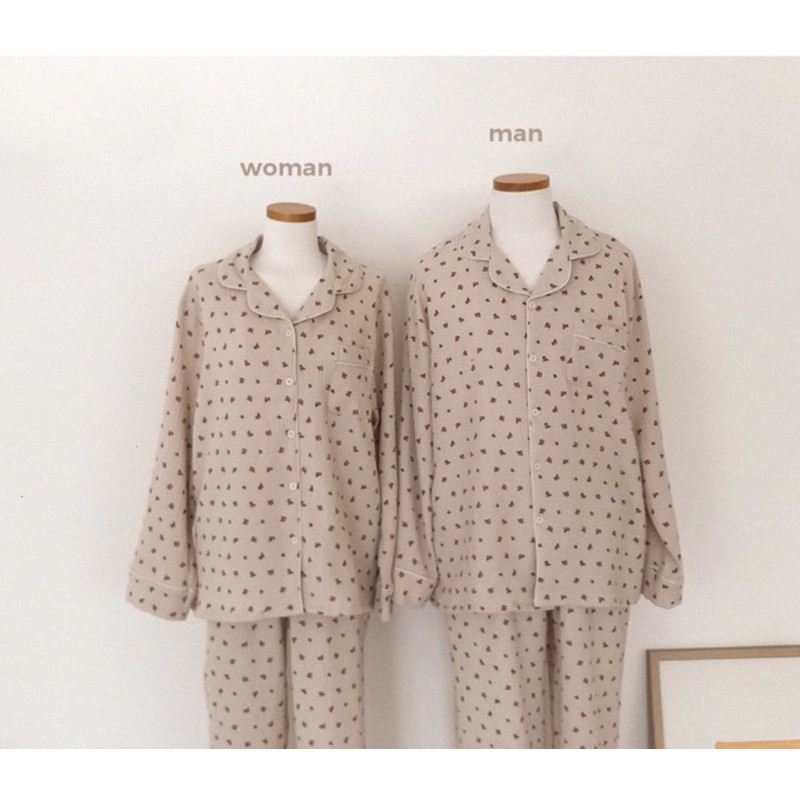 wooli_life 韓國 Juuneedu 睡衣 家居服 橘子 小花 居家服 長袖 薄長袖睡衣 韓國 情侶睡衣 睡衣
