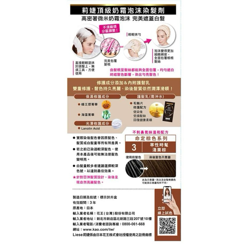 ♡ 特價款 蓋白髮 Liese莉婕頂級奶霜泡沫染髮劑 莉婕泡泡染 亞麻棕 玫瑰棕 遮白髮 泡泡染 染髮 莉婕頂級泡泡染
