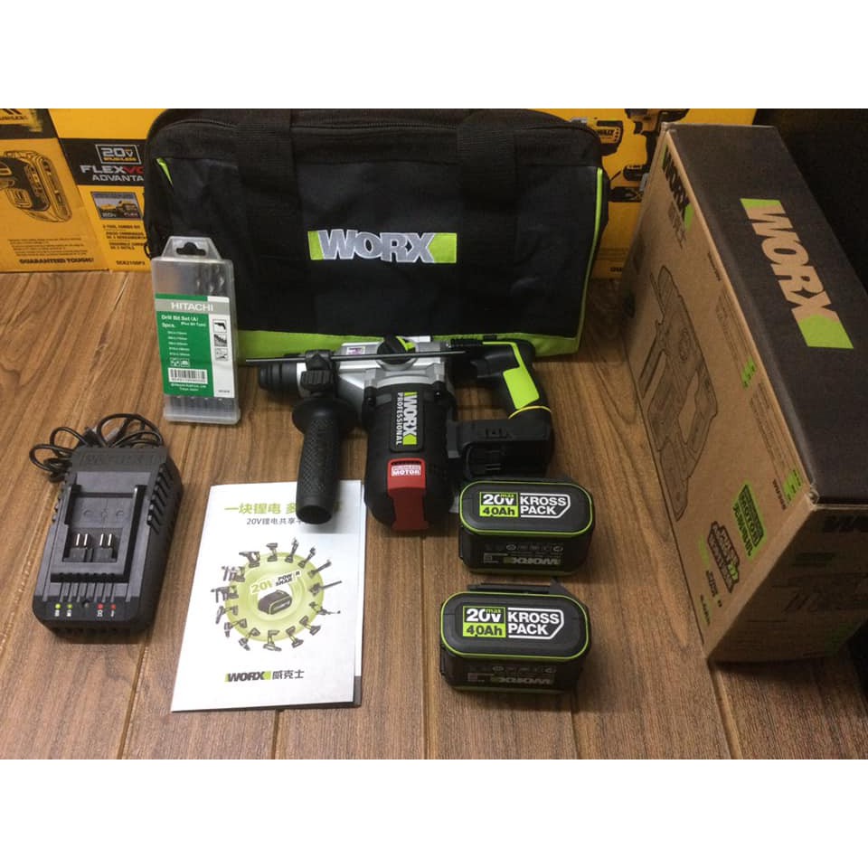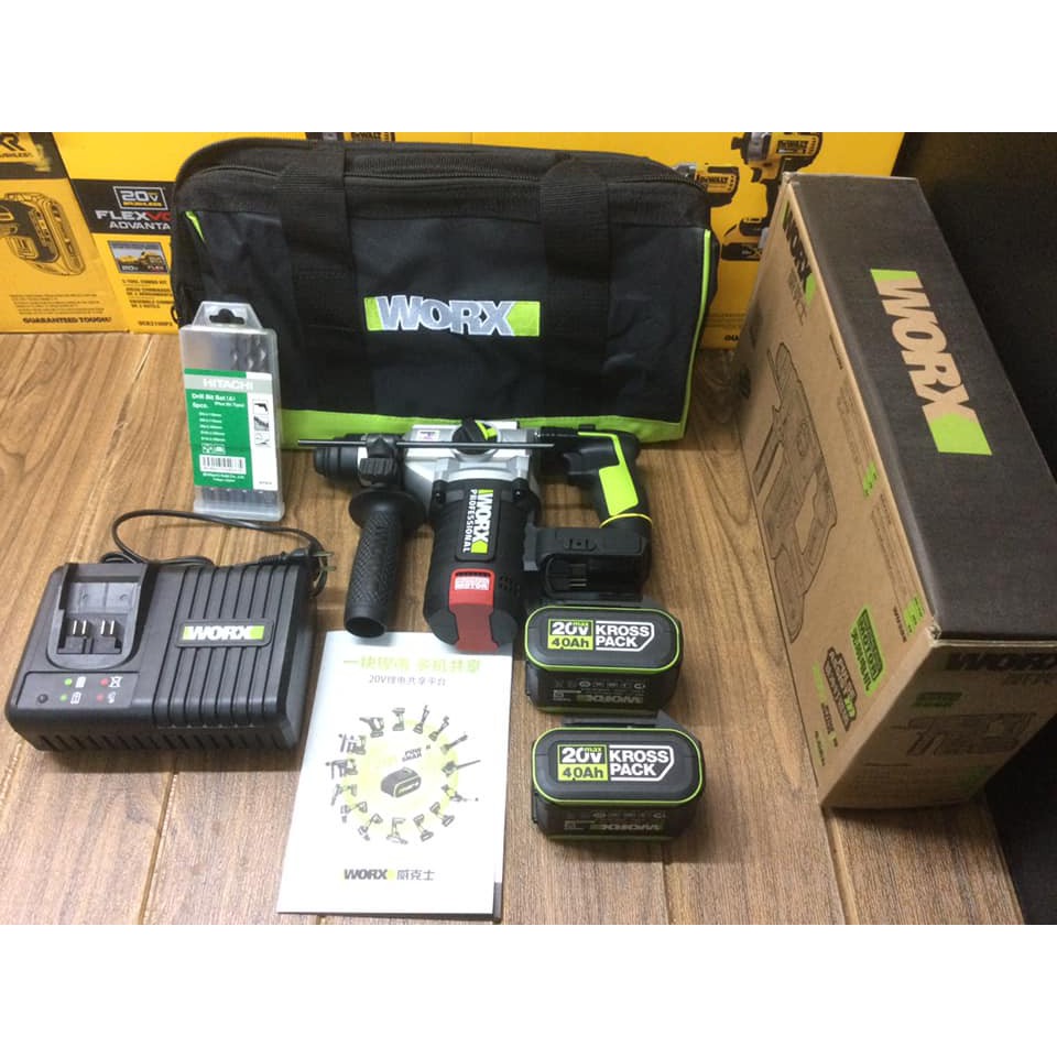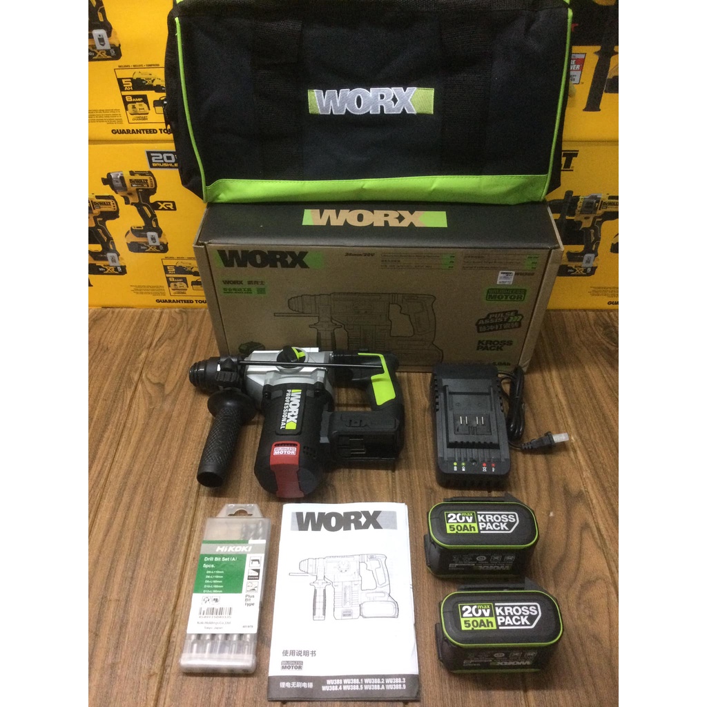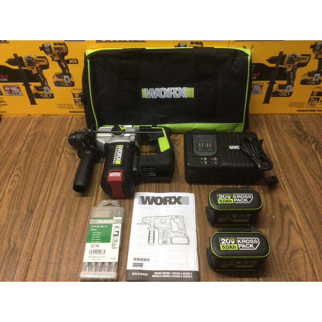 WORX 威克士 現貨 台灣現貨WU388 20V無刷充電電錘 可鑽瓷磚 附原廠工具包 送水泥鑽尾