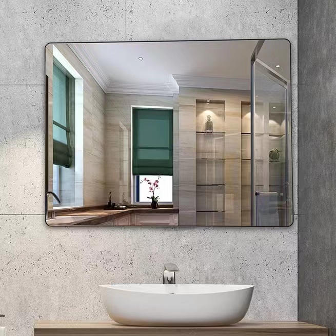 【 破損包賠免運 可開發票】簡約方形鋁框高清加厚防爆鏡子 浴室鏡子 浴廁鏡子 浴室化妝鏡 梳妝台上鏡 洗手台鏡子 貼