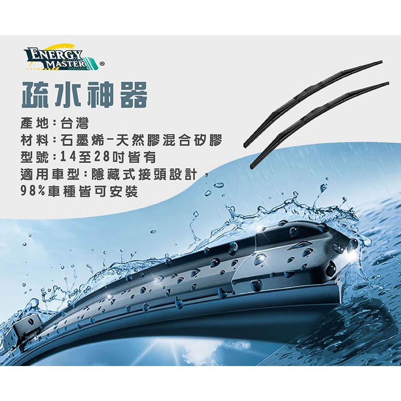 Energy Master超撥水矽膠雨刷(豪華版三節式 可對應多種歐規車接頭)雨天也能擁有好視野 (尺寸 接頭歡迎詢問)