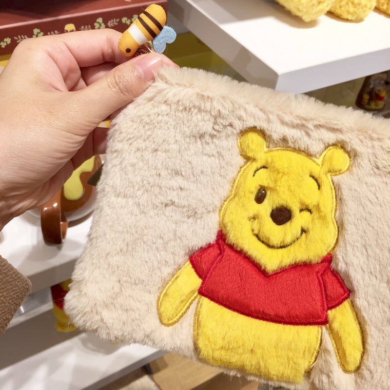 日本帶回 現貨❗️迪士尼正版小熊維尼眨眼絨毛化妝包 毛絨絨化妝袋筆袋收納袋 全新正品 聖誕禮物 交換禮物