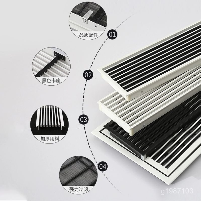 中央空调出风口 定制回风口 空调格栅百叶加长隐形线型ABS预埋边框通風百葉 百葉通風口 檢修口 門鉸回風口 浴室百葉窗