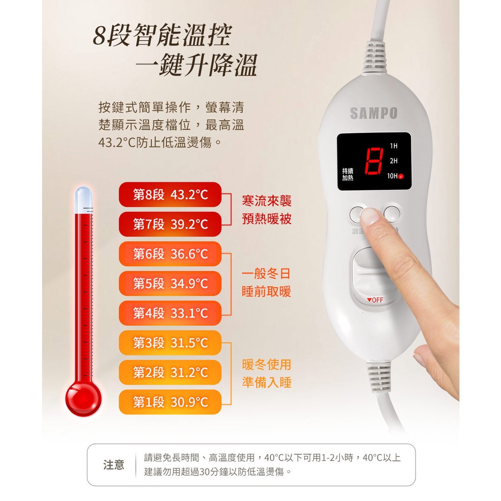 SAMPO聲寶 恆溫定時雙人電熱毯 HY-HA12