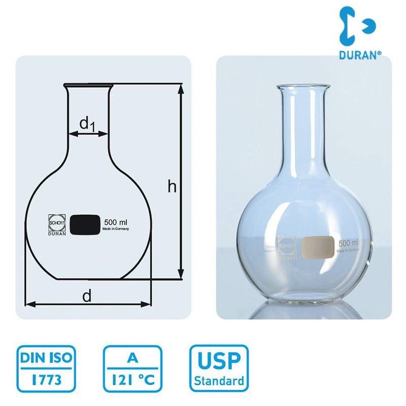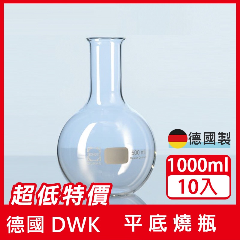 【衝評價!超值盒裝】德製 DURAN 1000ml 平底 燒瓶 【10入/盒】<蝦皮代開發票>