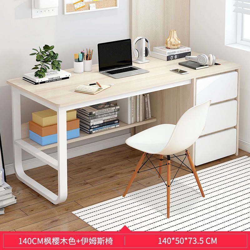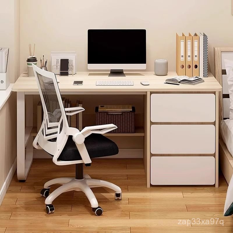 電腦桌臺式家用辦公桌現代簡約帶抽屜書桌桌椅組閤臥室學生學習桌 YXZO