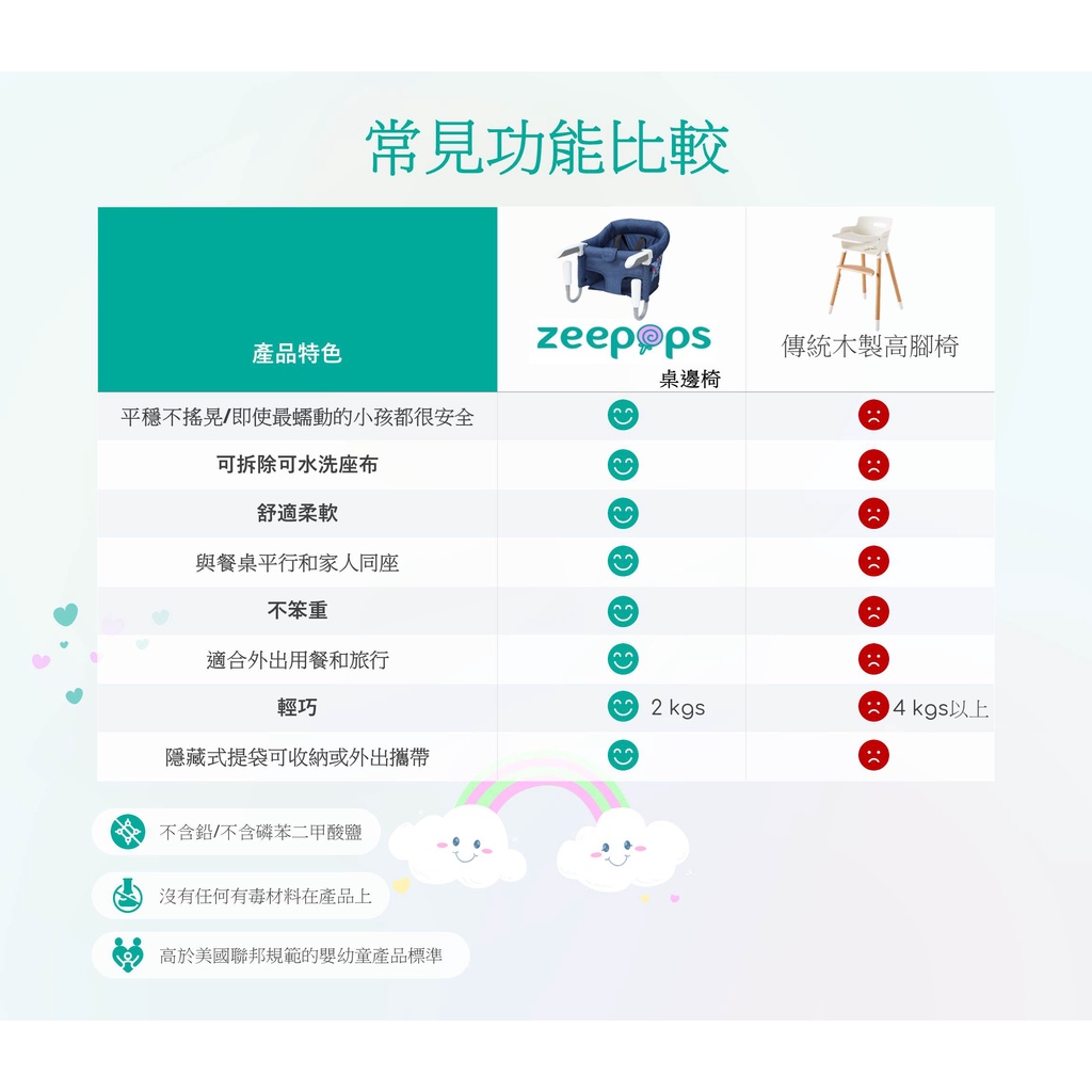 美國zeepops嬰幼童夾式桌邊高腳椅 含餐盤 可折疊附隱藏式背袋 輕巧容易攜帶 適合家用 外出用餐或旅行的最佳育兒幫手