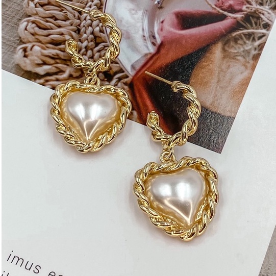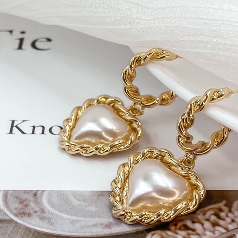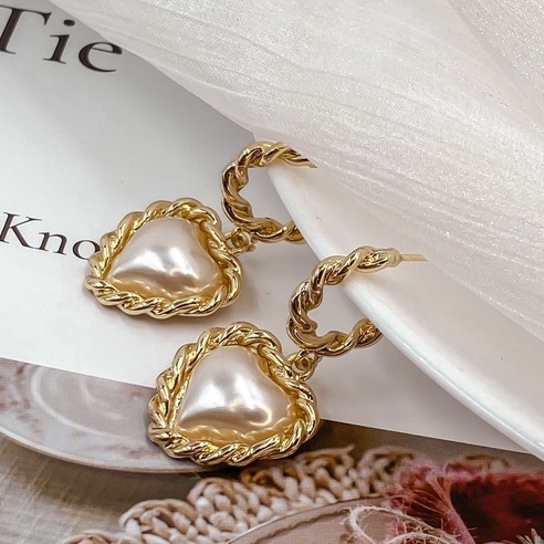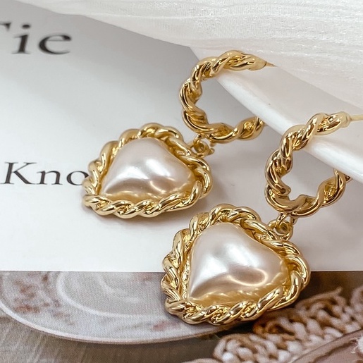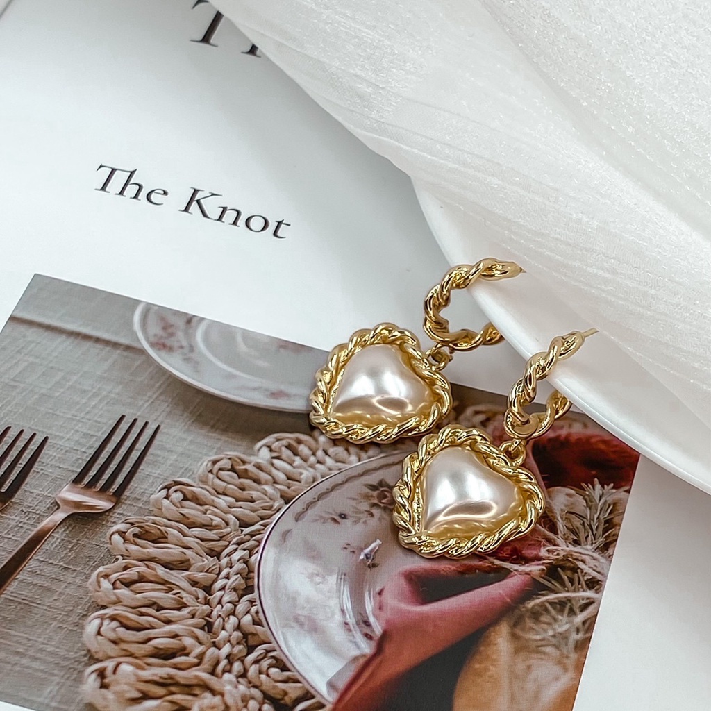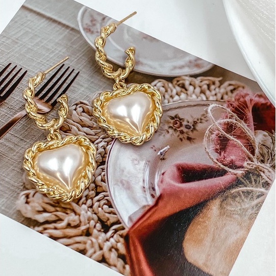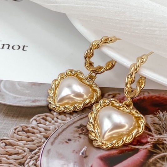 ʜᴢ ᴀᴄᴄᴇssᴏʀʏ 凡爾賽心型耳環 | 法式 珍珠 復古款 宮廷風 約會搭配 現貨【BG03S004】