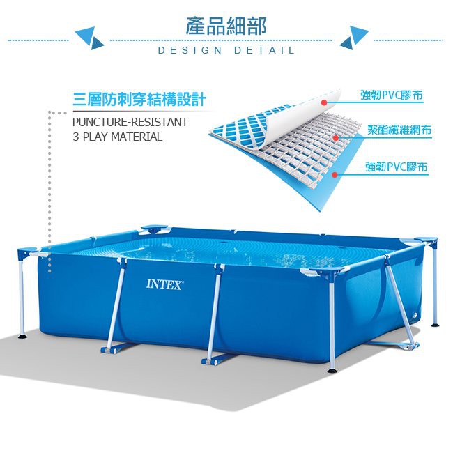 台灣現貨【INTEX】簡易裝長方型框架游泳池 蓄水池/免充氣泳池/免充氣游泳池/泳池/游泳池/戲水池/泡湯池 6歲+