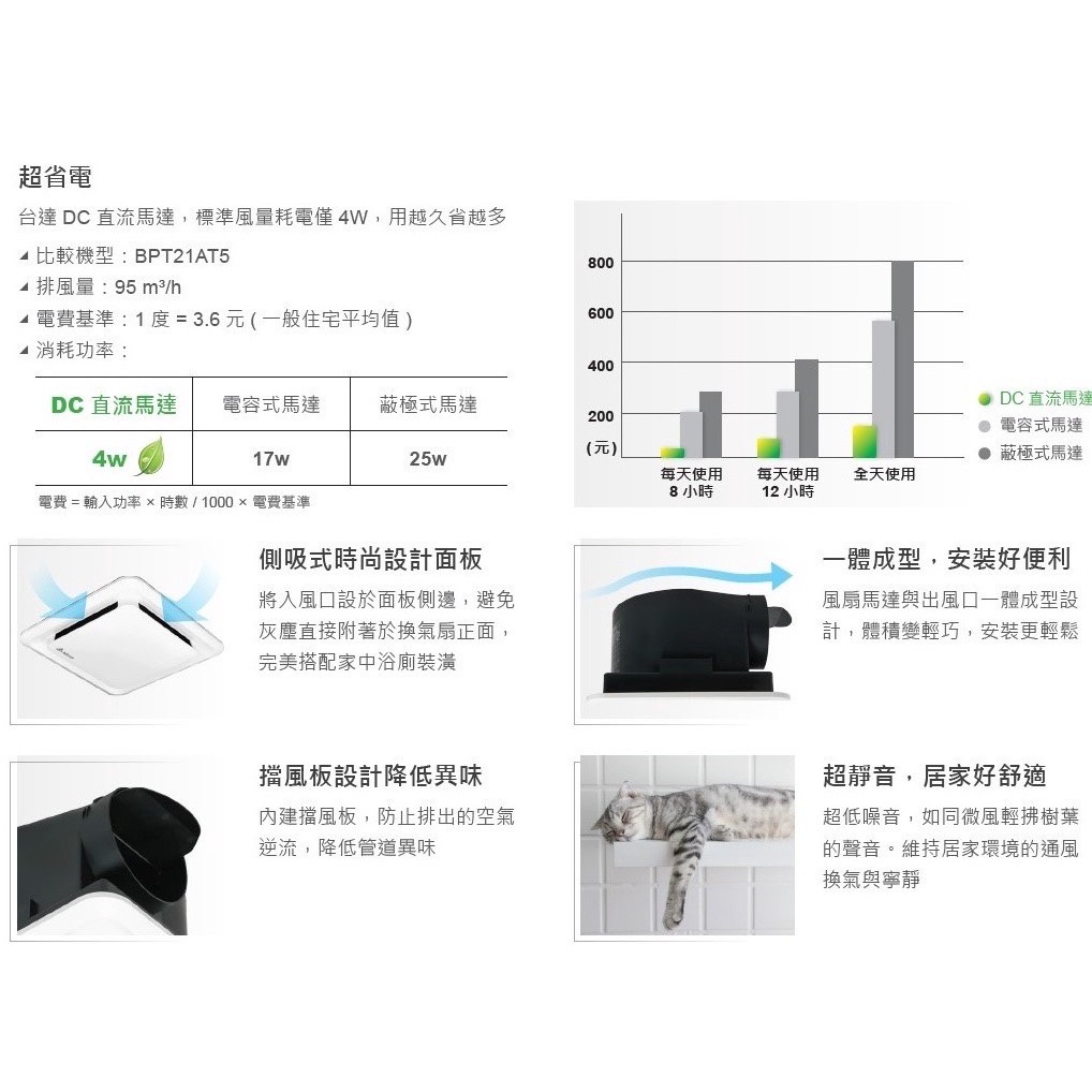 附發票【Alex】台達電子 DC直流節能換氣扇 VFB21ABT5/VFB21AAT5 單速風量 省電 通氣扇 三年保固
