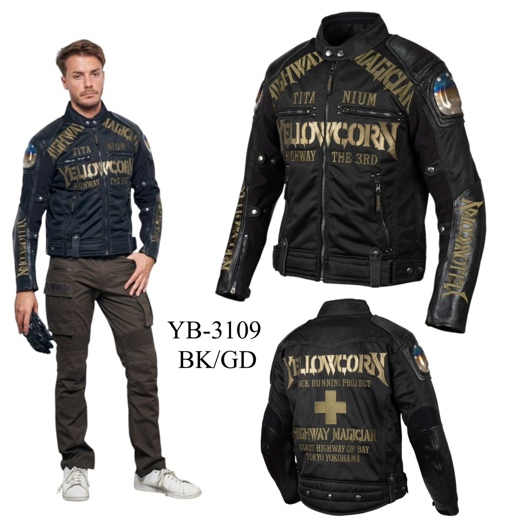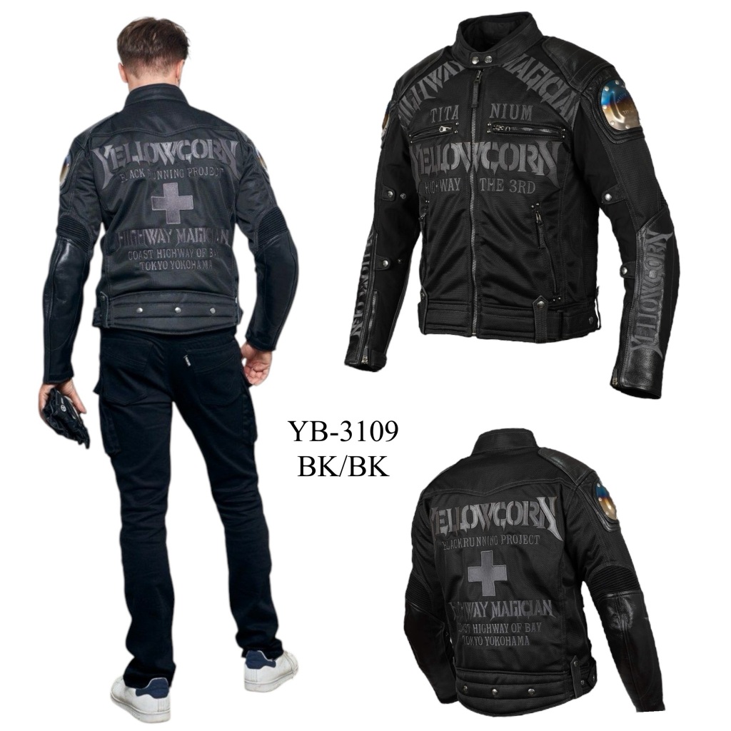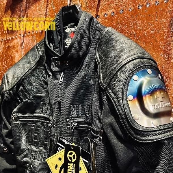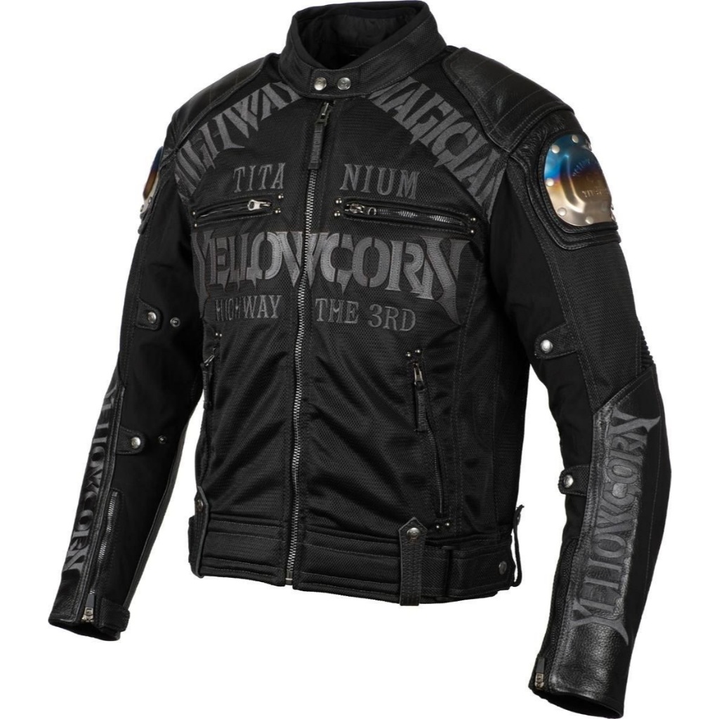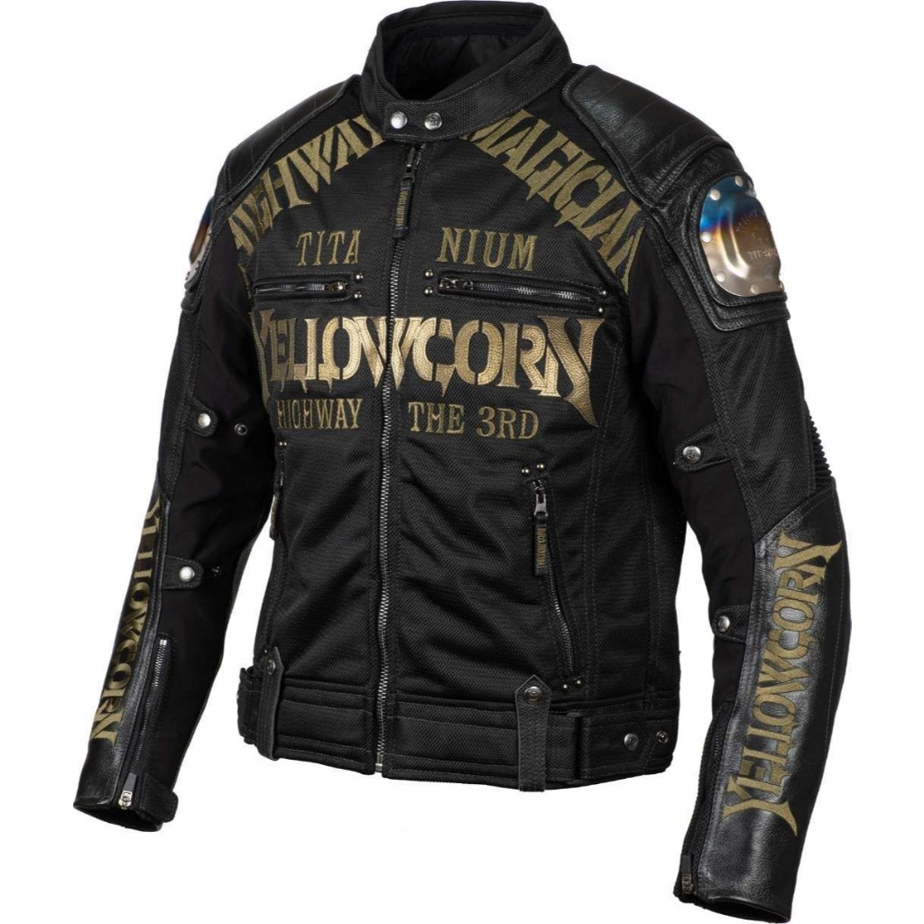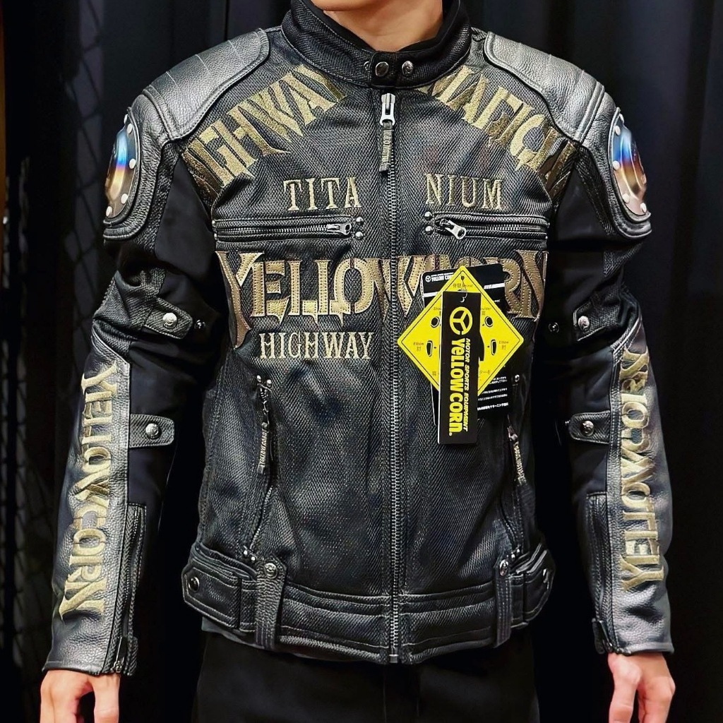 開關倉庫 -日本Yellowcorn 鈦合金 防摔衣 護具 防摔外套 牛皮 YB-3109 黑色 黑金