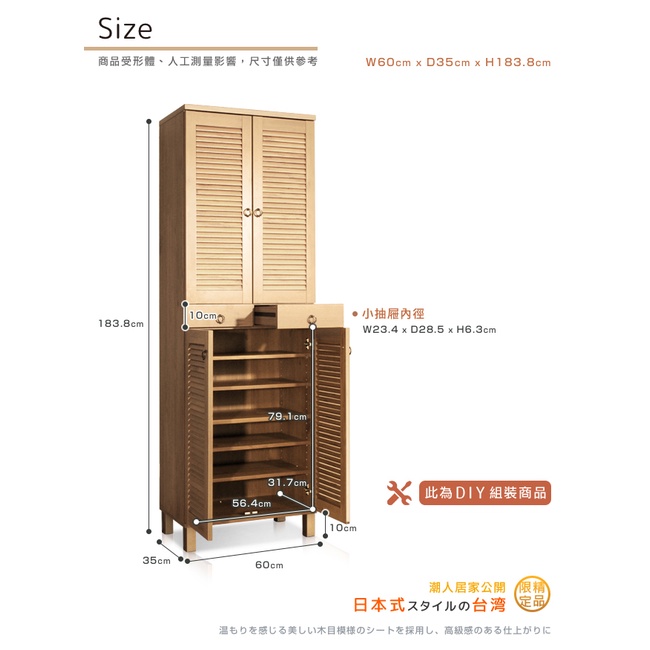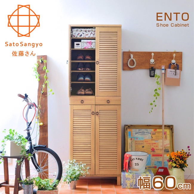 日本原創設計|Sato|ENTO涉趣百葉雙抽四門高鞋櫃|幅60cm|原木色|原價8580特價6680