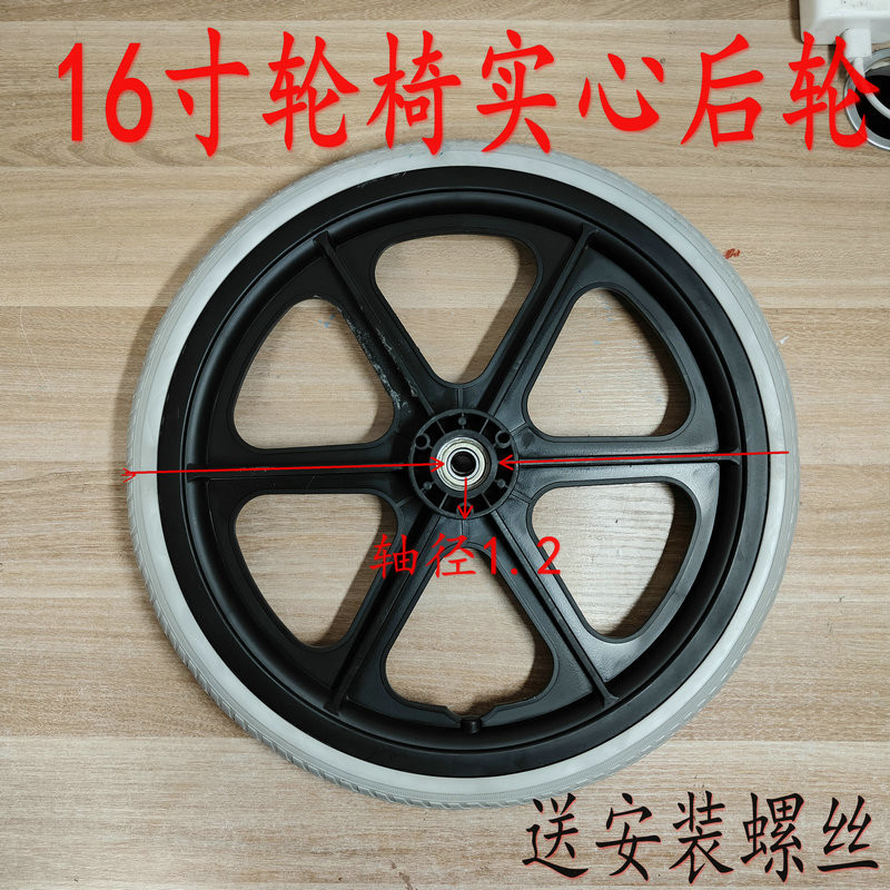 輪椅輪胎16寸後輪實心胎一體輪16*1.75型後輪免充氣手動輪椅配件