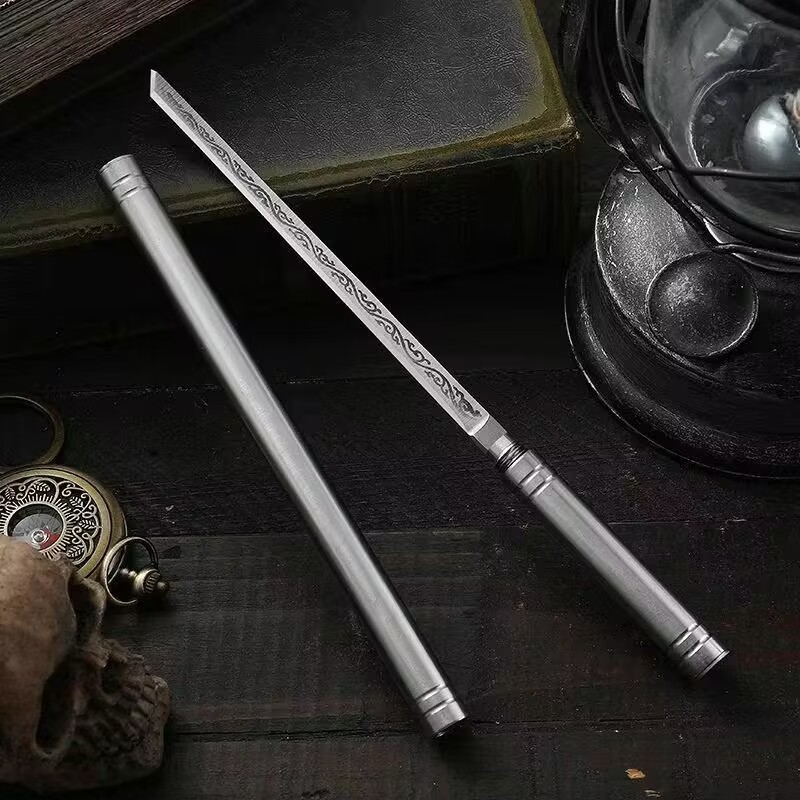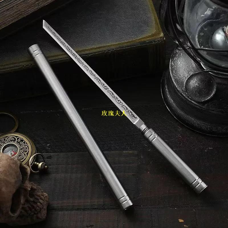 【霸王棍】龍泉鍛打棍刀迷你不銹鋼錳鋼一體茶刀茶針把玩擺件茶器大馬士革茶刀黑檀木茶刀
