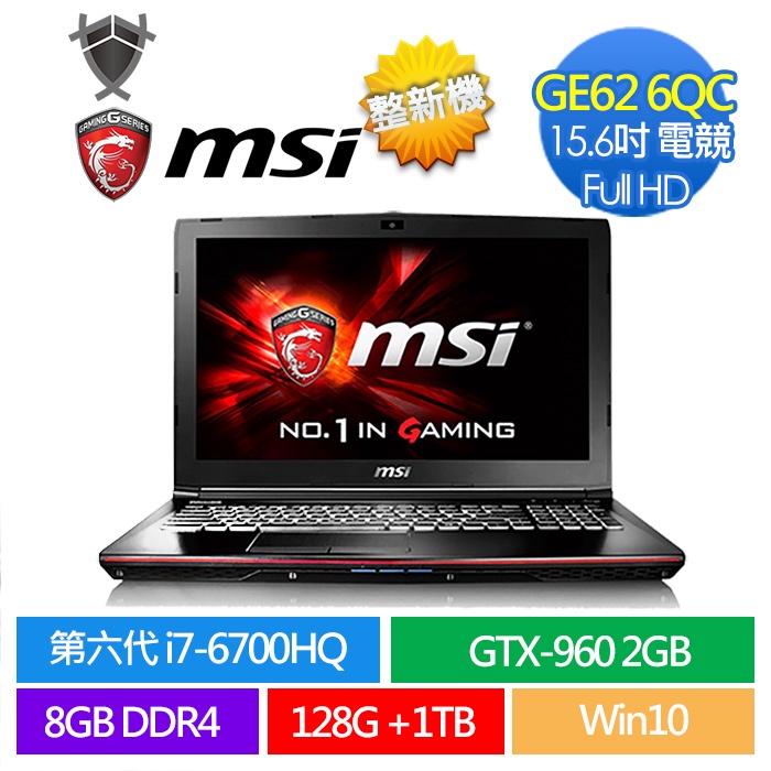 MSI 筆電 GE62 GE 15.6吋 i7 GTX 960M 電競筆電 二手筆電 整新機 剪輯 繪圖