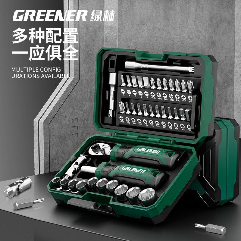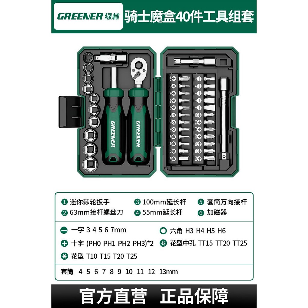 ♥免運費♥綠林【騎士魔盒】棘輪螺絲刀套裝摩托車隨車工具維修套筒扳手組合