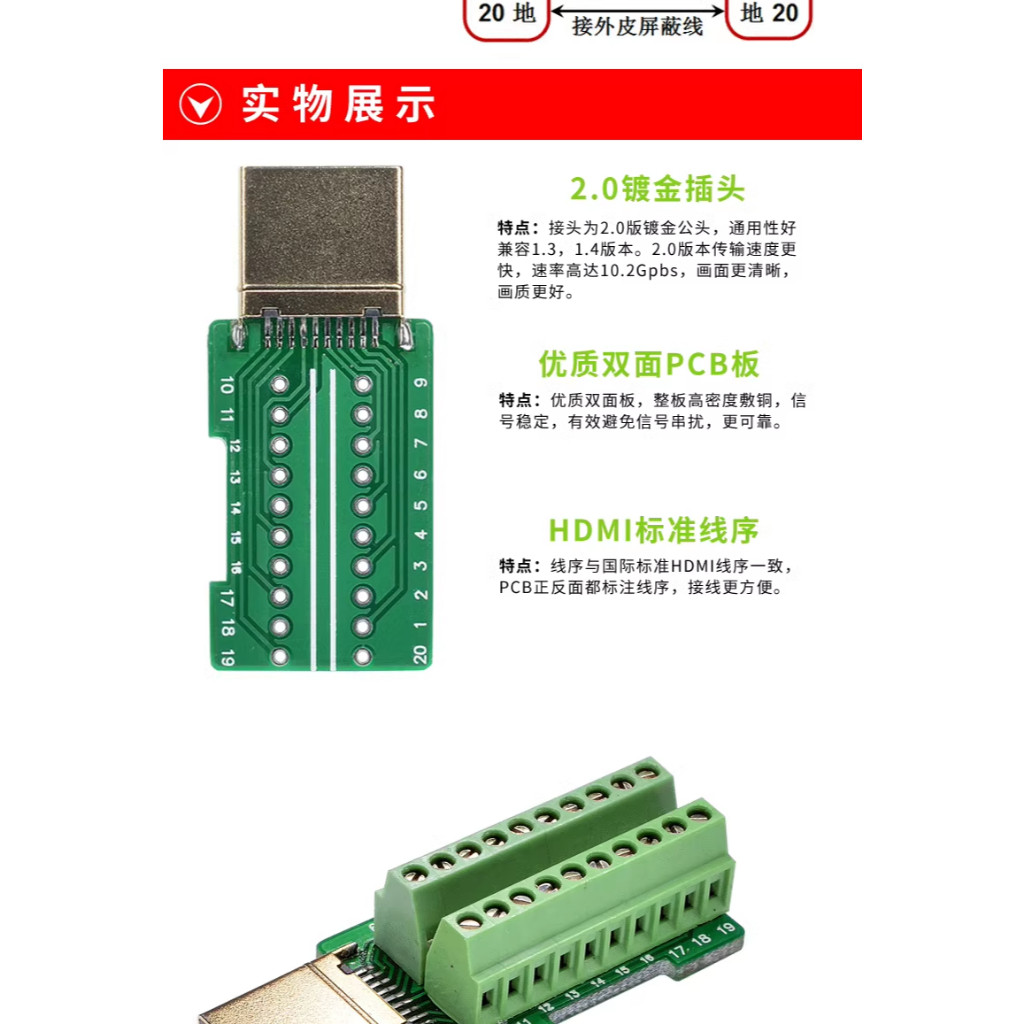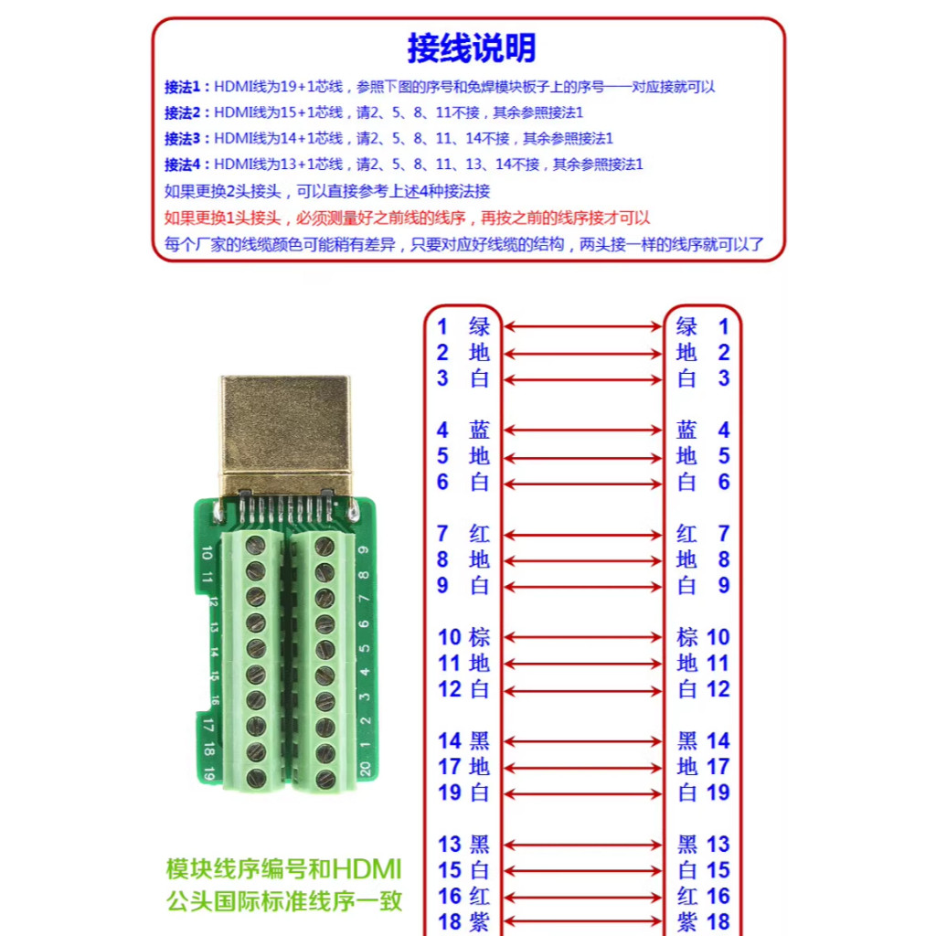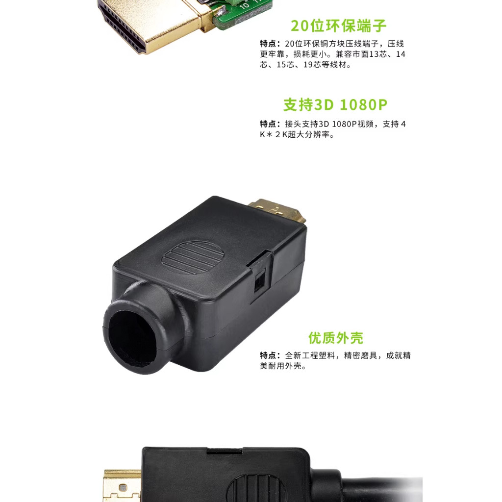 HDMI免焊公頭接插件升級hdmi高清線接頭轉接線端子配外殼模塊