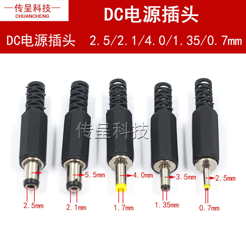 DC電源插頭DC005 002接頭5.5*2.1/2.5/3.5/4.0*1.7/0.7MM公頭圓孔