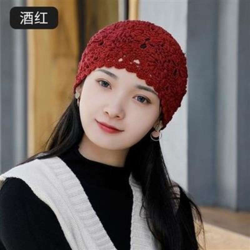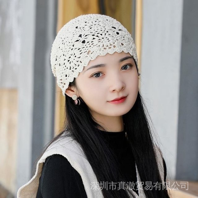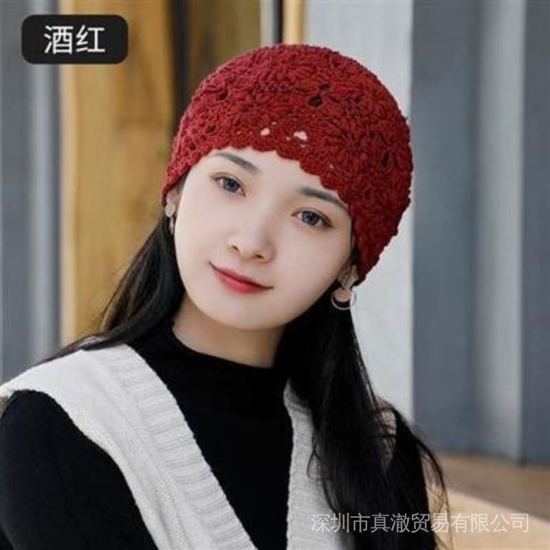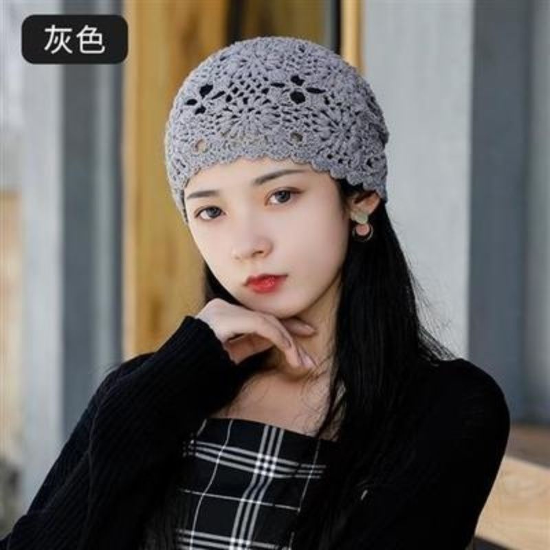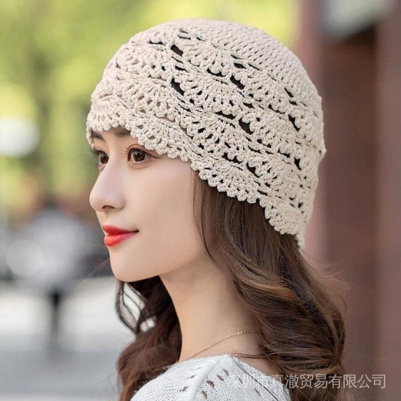 薄款鏤空手工女鉤帽子 勾花編織女士毛線針織帽 包頭帽