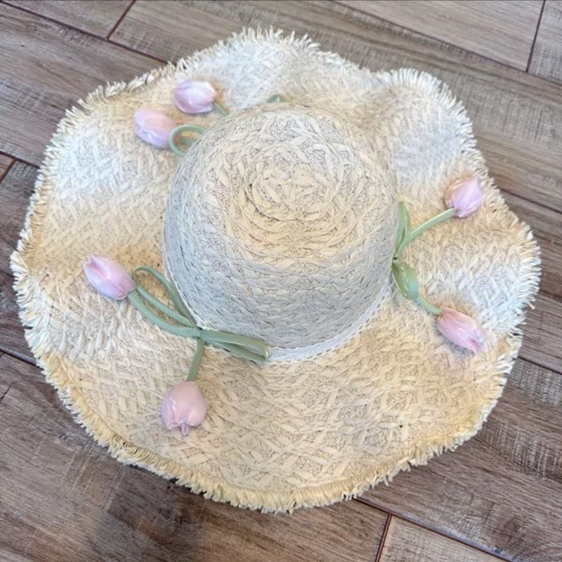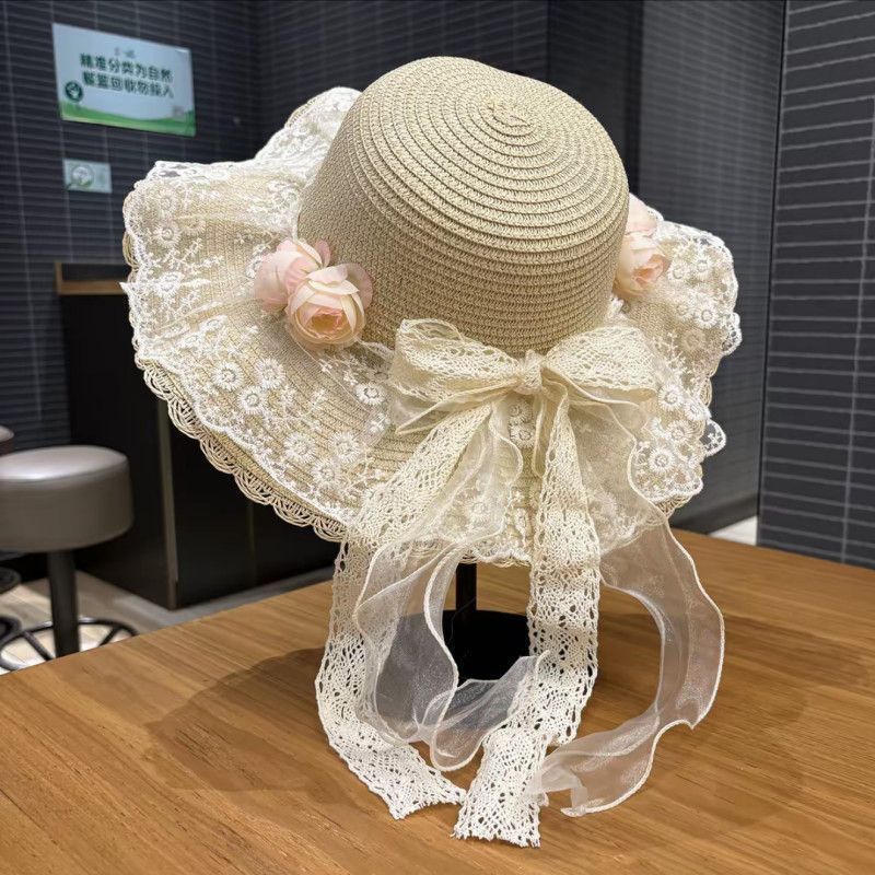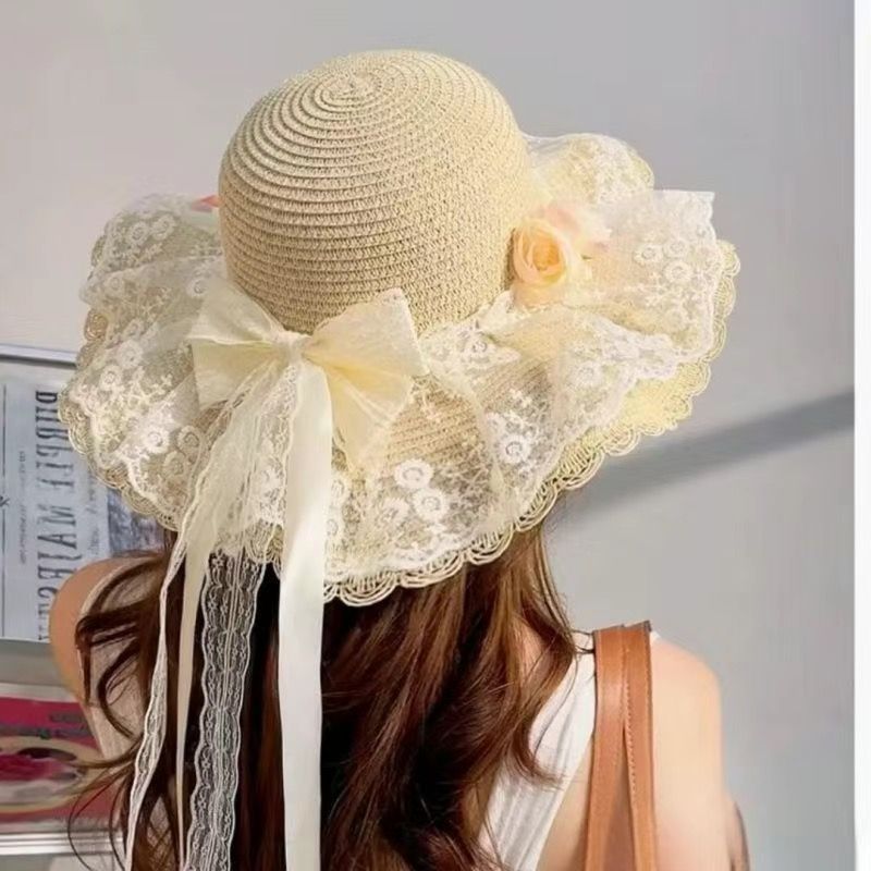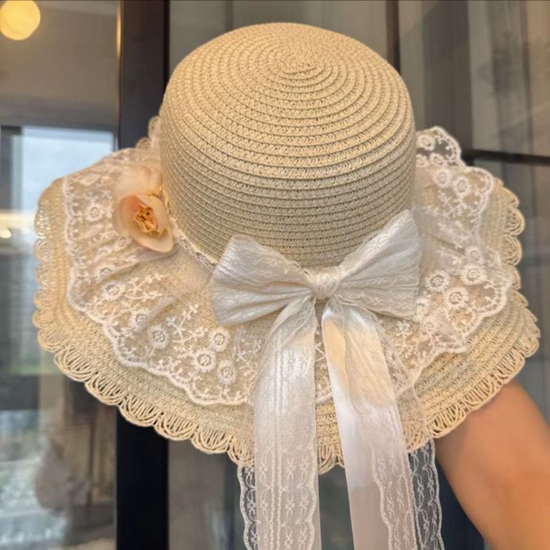 ~好貨優選~原創花漾海邊lolita帽子甜美蝶結波浪草帽森系田園防晒遮陽沙灘帽