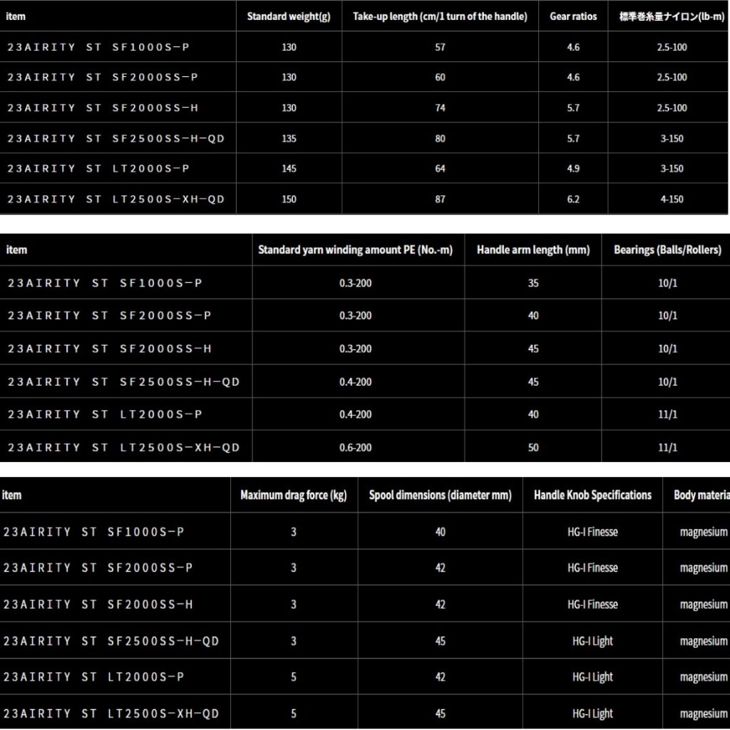 Daiwa 23'AIRITY ST Various types SF1000S-P/2000SS-P/SS-H/SF2