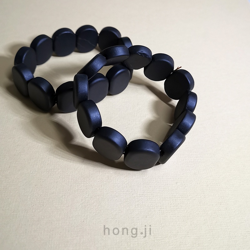 珠鍊 砭石手鍊 天然砭石珠鍊 A52 佛珠手鍊 男女款男女通用砭石串珠砭石圓珠泗濱砭石配件 砭石首飾 黑色時尚