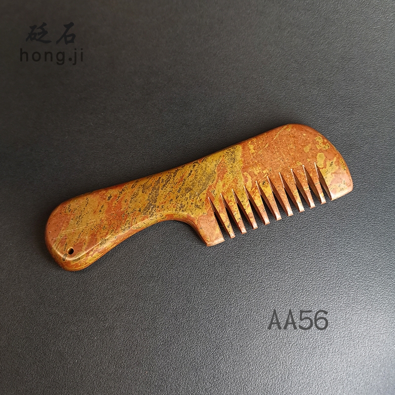 紅砭石 泗濱砭石 天然紅砭原石 AA56 贈收納袋 砭石梳 刮痧 原石打磨光滑細膩梳頭按摩養生SPA 梳子 紅砭石梳