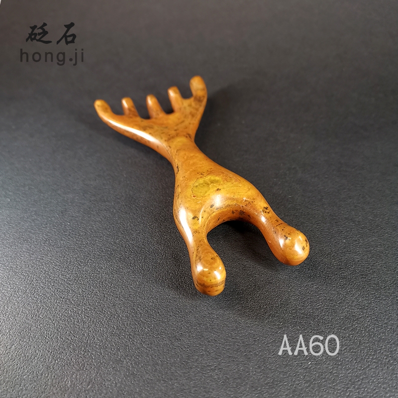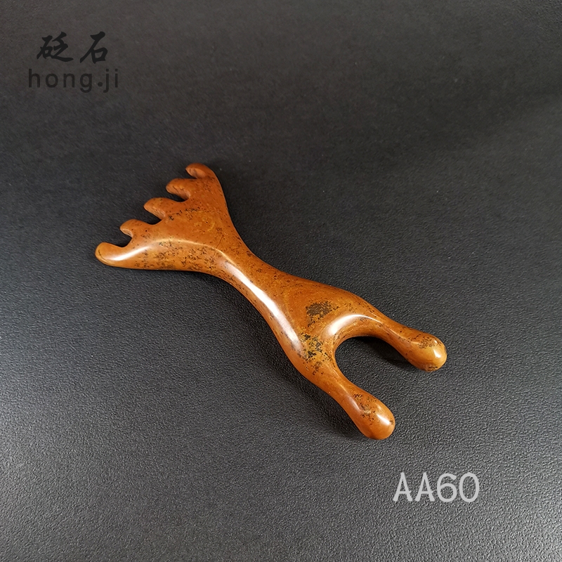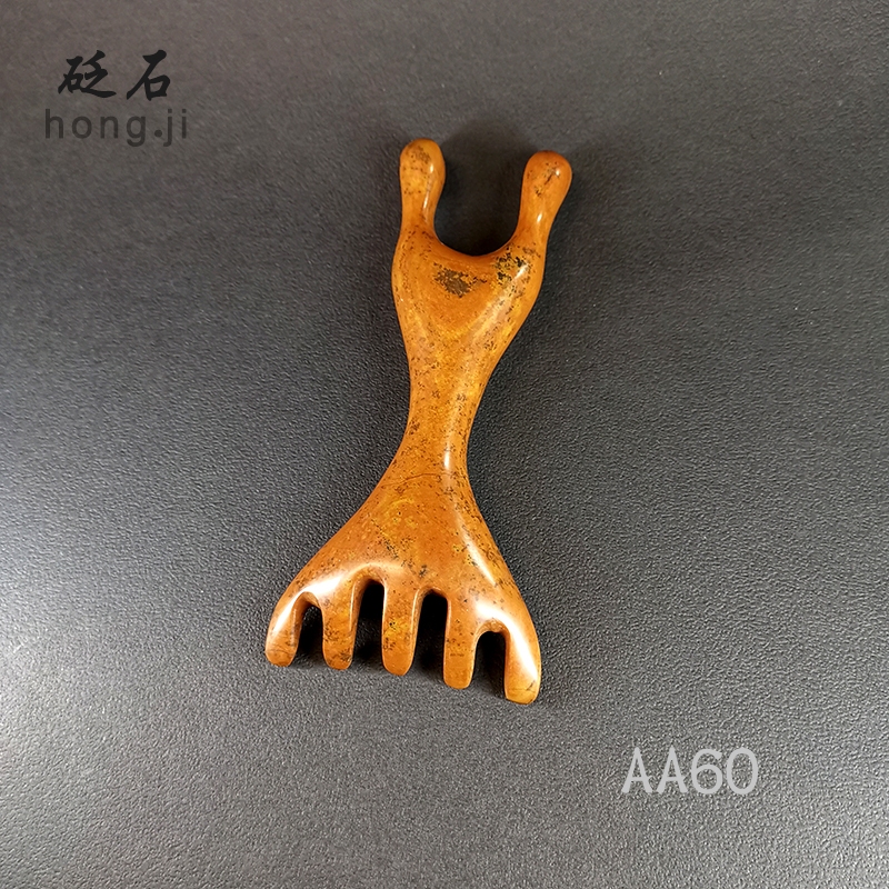 紅砭石 眼部點穴鼻括按摩梳 泗濱砭石 天然紅砭原石 AA60 贈收納袋 虎口按摩 原石打磨光滑細膩梳頭按摩SPA 梳頭皮