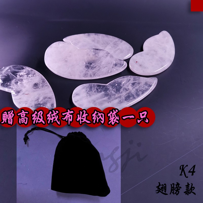 粉晶刮痧板 玉石刮痧板 送高級絨布收納袋 K4翅膀款 刮痧板 臉部眼部刮痧板 背部大腿刮痧 經絡 刮痧 美容撥筋 瘦臉