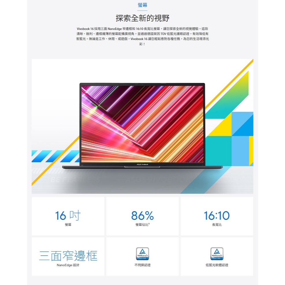 ASUS 華碩 Vivobook 16 (X1605) X1605VA 16吋 輕薄筆電 i5-13420H 光華
